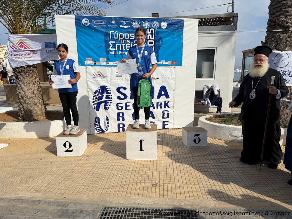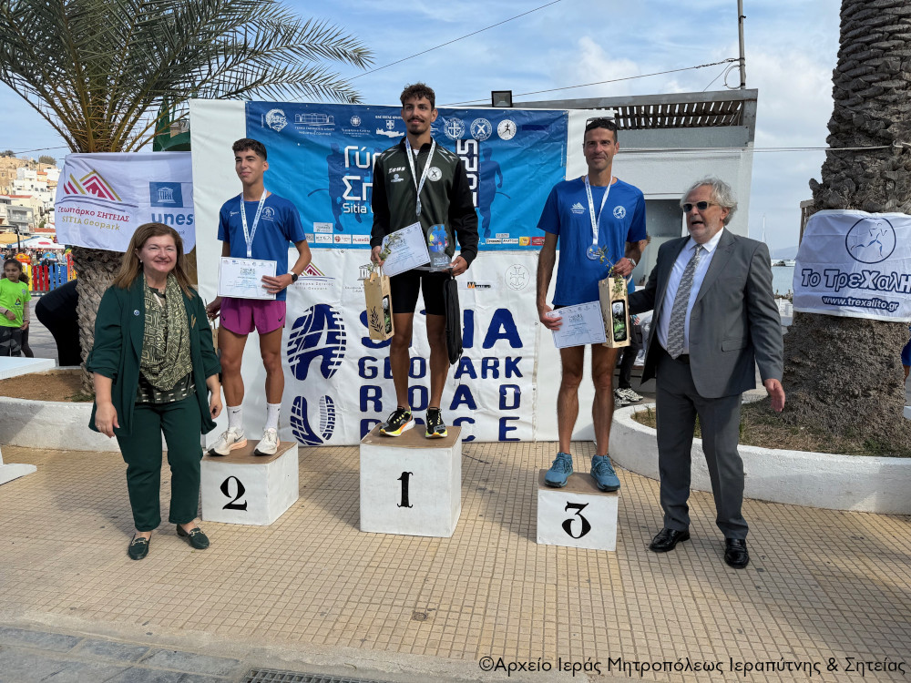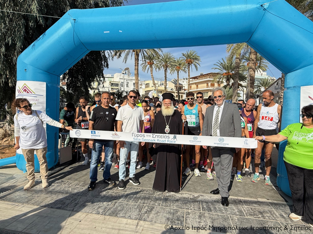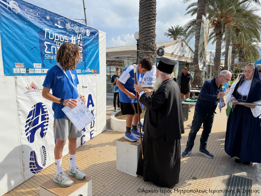 Στη συνέχεια χαιρέτισε την διεξαγωγή των αγώνων ο Δήμαρχος Σητείας κ. Γιώργος Ζερβάκης και αφού ευχαρίστησε τους συντελεστές και τον ΣΕΓΑΣ Κρήτης, που από φέτος οι αγώνες είναι ενταγμένοι στο επίσημο καλεντάρι του, απένειμε στον Σεβ. κ. Κύριλλο μία αναμνηστική πλακέτα, ως ένδειξη τιμής και σεβασμού για τη στήριξη και την προσφορά του στην τοπική κοινωνία.