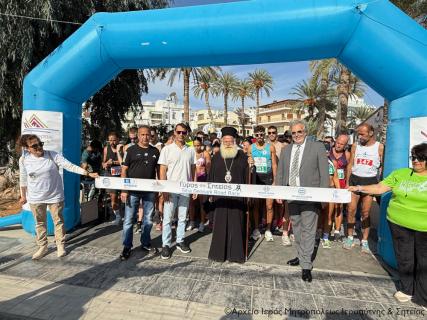 Μετά τον αγιασμό, αφού συνεχάρη τους συνδιοργανωτές των αγώνων, ευχήθηκε στους αθλητές καλή επιτυχία με την ευλογία και τη σκέπη της Αγίας Αικατερίνης της πανσόφου.