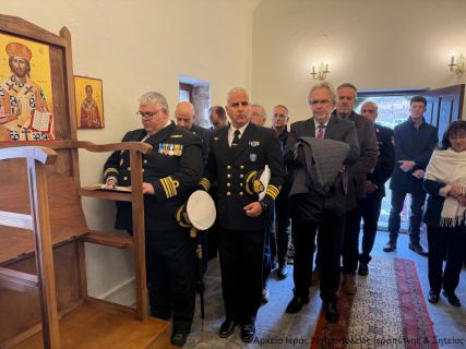 Ανήμερα της εορτής ο Σεβασμιώτατος Μητροπολίτης Ιεραπύτνης και Σητείας κ. Kύριλλος χοροστάτησε στην ακολουθία του Όρθρου, ευλόγησε τους άρτους και στη συνέχεια ιερούργησε και προέστη στην καθιερωμένη Δοξολογία για την εορτή του Πολεμικού Ναυτικού.