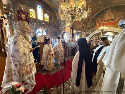 Στο τέλος της Θείας Λειτουργίας τελέστηκε το καθιερωμένο Αρχιερατικό μνημόσυνο «υπέρ αναπάυσεως των ψυχών πάντων των υπέρ της πίστεως και της πατρίδος εν τη Μικρά Ασία κατά την Μικρασιατικήν Εκστρατείαν ηρωικώς αγωνιζόμενων και μαρτυρικώς εκτελεσθέντων, σφαγιασθέντων, ολοκαυτωθέντων και οιωδήποτε τρόπῳ τελειωθέντων πατέρων και αδελφών ημών», καθώς και το τεσσαρακονθήμετο μνημόσυνο του μακαριστού Θωμά Δαγκλή.