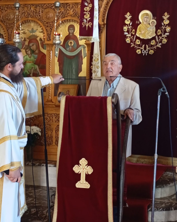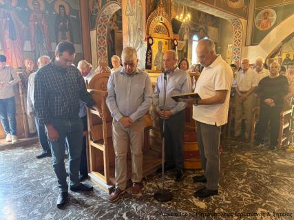 Στην Αρχιερατική θεία Λειτουργία έλαβαν μέρος ο Πανοσιολ. Αρχιμ. Αμβρόσιος Σκαρβέλης, Πρωτοσύγκελλος της Ι. Μητροπόλεως, Πανοσιολ. Αρχιμ. Φιλήμων Μπέτσος, ο Αιδεσιμ. πρωτ. Μιχαήλ Ξυδιανός, συνταξιούχος Εφημέριος, ο Αιδεσιμ. πρωτ. Σάββας Λιναρδάκης, Εφημέριος και προϊστάμενος της Ενορίας, και ο Διάκονος Θεμιστοκλής Μπεϊνάς, ενώ στο μνημόσυνο έλαβε μέρος και ο Αιδεσιμ. Οικονόμος π. Κων/νος Λιοντάκης, Εφημέριος της Ενορίας.