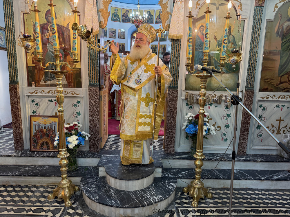 Στο κήρυγμά του ο Σεβ. ανάλυσε την ευαγγελική περικοπή του άφρονος πλουσίου και σημείωσε ότι ο Χριστός δεν κατακρίνει τον πλούσιο και τον πλούτο, αλλά ξεκαθαρίζει τη σωστή χρήση των υλικών αγαθών και μας θυμίζει ότι οφείλουμε να ιεραρχήσουμε τις προτεραιότητες και τις επιλογές μας απέναντι στην ύλη στην καθημερινή μας ζωή. Δεν είναι αυτοσκοπός της επίγειας ζωής του ανθρώπου η συσσώρευση υλικών αγαθών και η προσκόλληση σ᾽ αυτά, αλλά το μοίρασμά τους στους έχοντας ανάγκη συνανθρώπους μας και η ικανοποίηση των στοιχειωδών αναγκών τους. Μόνο τότε θησαυρίζει ο άνθρωπος και αποταμιεύει στους ουρανούς πνευματική ωφέλεια και αναλοίωτα και άφθαρτα αγαθά, κατέληξε ο Σεβ.