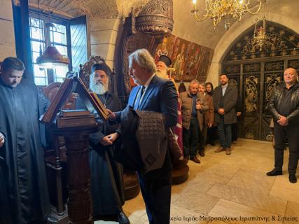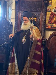 Μετά την Απόλυση ο Σεβ. Μητροπολίτης κ. Κύριλλος ευχήθηκε εγκάρδια στον εορτάζοντα Καθηγούμενο της Μονής και Πρωτοσύγκελλο της Ιεράς Μητροπόλεως, έτη πολλά και ευλογημένα παρά Κυρίου με τις πρεσβείες του εορταζομένου Αγίου Ιεράρχου Αμβροσίου, του οποίου φέρει το όνομα, και την προστασία της Παναγίας της Ακρωτηριανής και του Αγίου Ιωάννου του Θεολόγου.