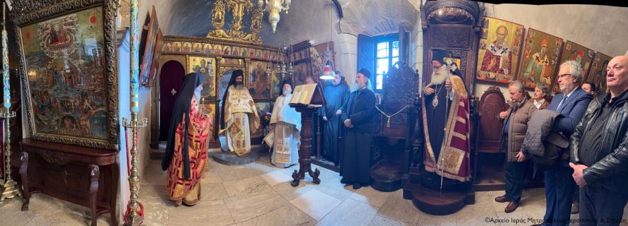 Την Κυριακή I΄ Λουκά 7 Δεκεμβρίου 2025, εορτή του Αγίου Αμβροσίου επισκόπου Μεδιολάνων, ο Σεβ. Μητροπολίτης Ιεραπύτνης και Σητείας κ. Κύριλλος χοροστάτησε στην ιστορική Ιερά Πατριαρχική και Σταυροπηγιακή Μονή Τοπλού Σητείας κατά τις ακολουθίες του Όρθρου, όπου ευλόγησε τους προσφερόμενους άρτους, και της επακολουθήσασας Θείας Λειτουργίας, όπου προεξήρχε ο εορτάζων Ηγούμενος της Μονής Πανοσιολ. Αρχιμ. Αμβρόσιος Σκαρβέλης.