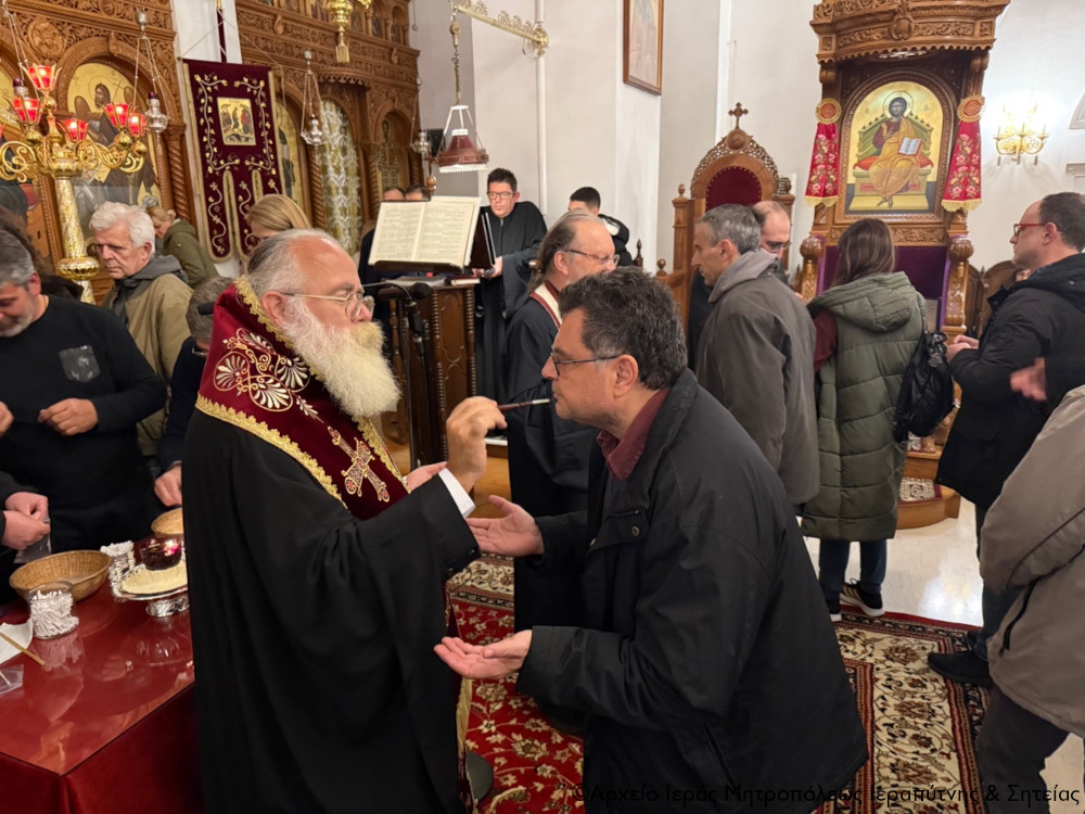 Στο τέλος της ακολουθίας, κατά την τάξη, ο Σεβασμιώτατος και οι Ιερείς έχρισαν με το αγιασμένο έλαιο τους παρισταμένους πιστούς.