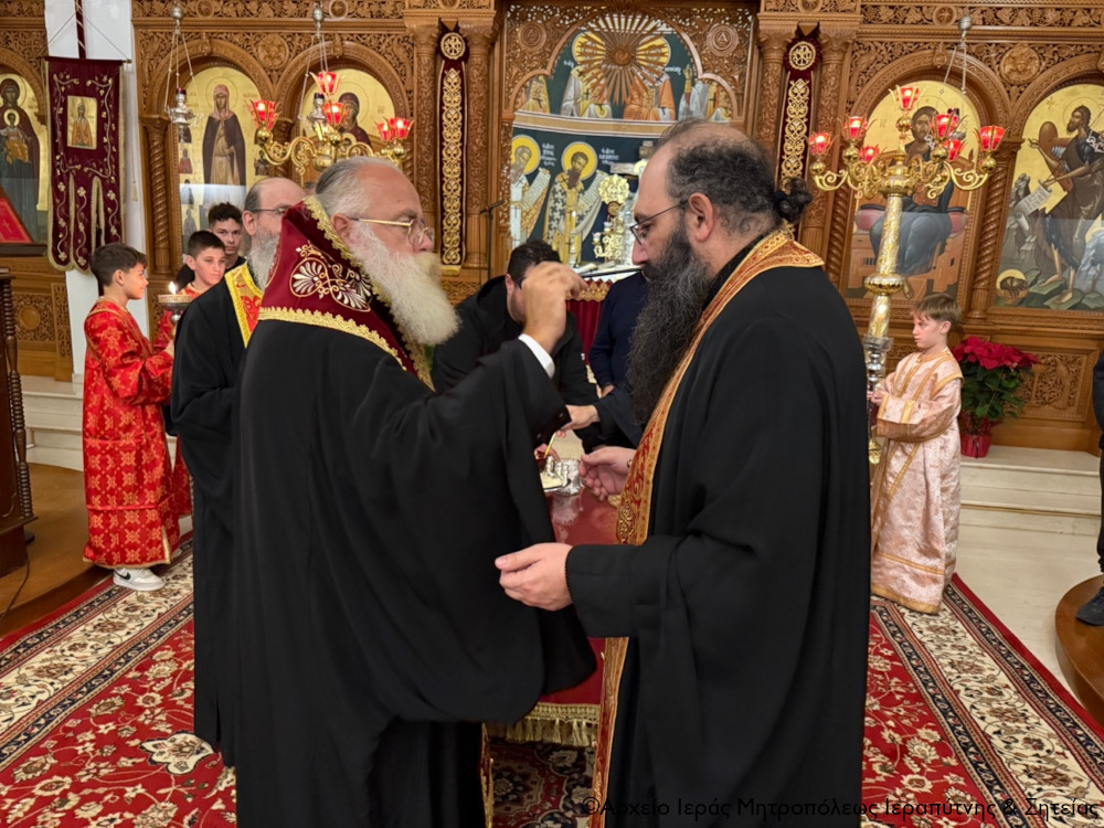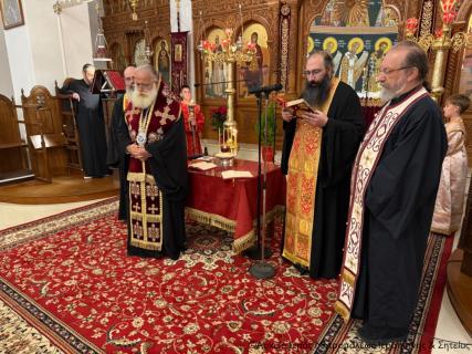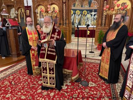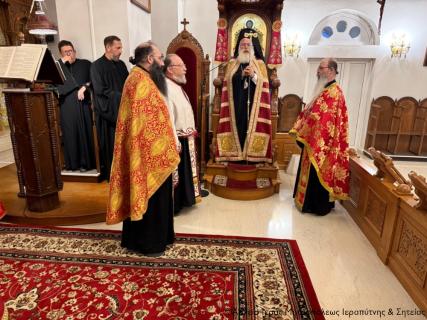 Στην ακολουθία του Εσπερινού και στο Ιερό Ευχέλειο που ακολούθησε έλαβαν μέρος ο Πανοσιολ. Αρχιμ. Φιλήμων Μπέτσος, ο Πανοσιολ. Αρχιμ. Πορφύριος Αγγελάκης, ιερατικώς προϊστάμενος της Ενορίας, ο Αιδεσ. Ιερείς Γεώργιος Λογκάκης και ο Ιερολ. Διάκονος Θεμιστοκλής Μπεϊνάς.