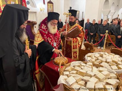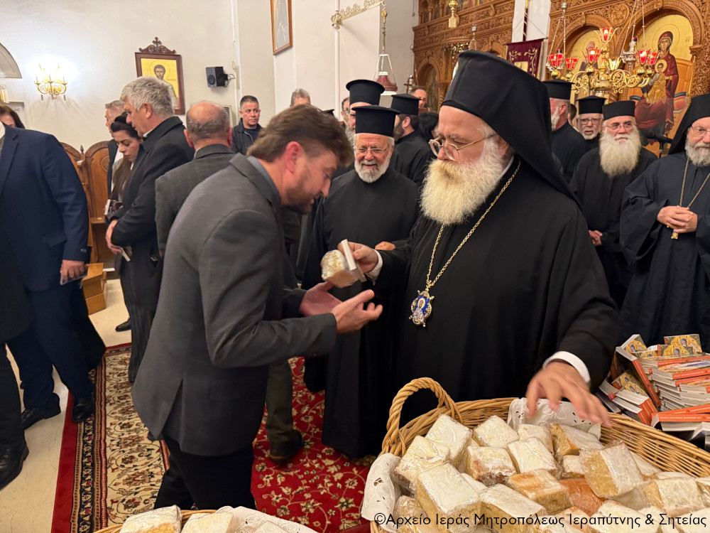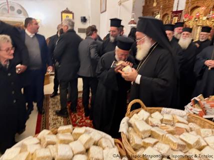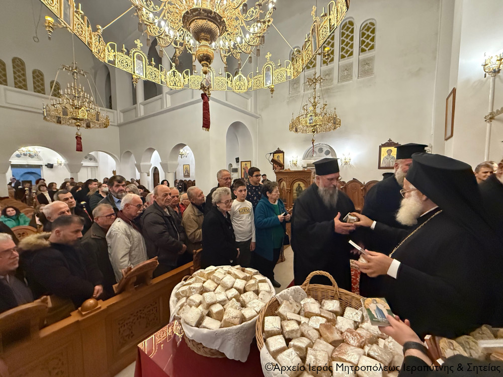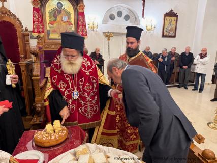 Μετά τη διανομή της Βασιλόπιτας και του ημερολογίου από τον Σεβ. κ. Κύριλλλο, ακολούθησε κέρασμα για όλο το εκκλησίασμα στο Αρχονταρίκι του ναού.