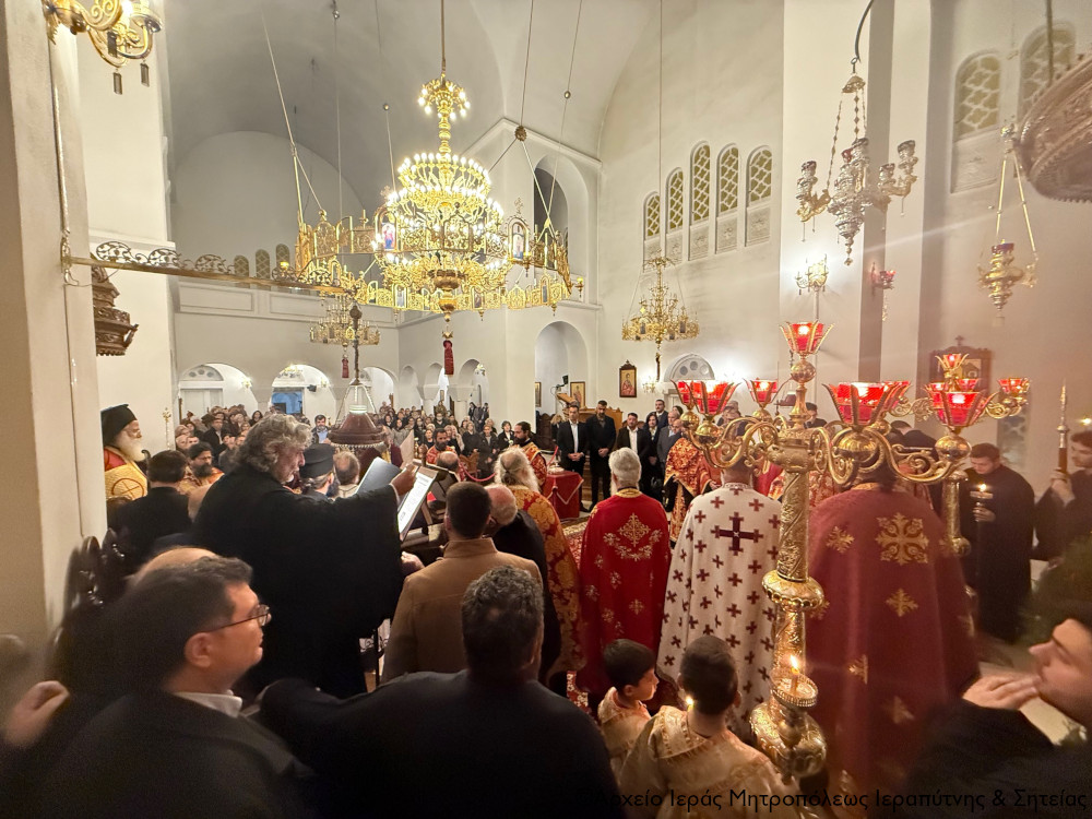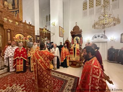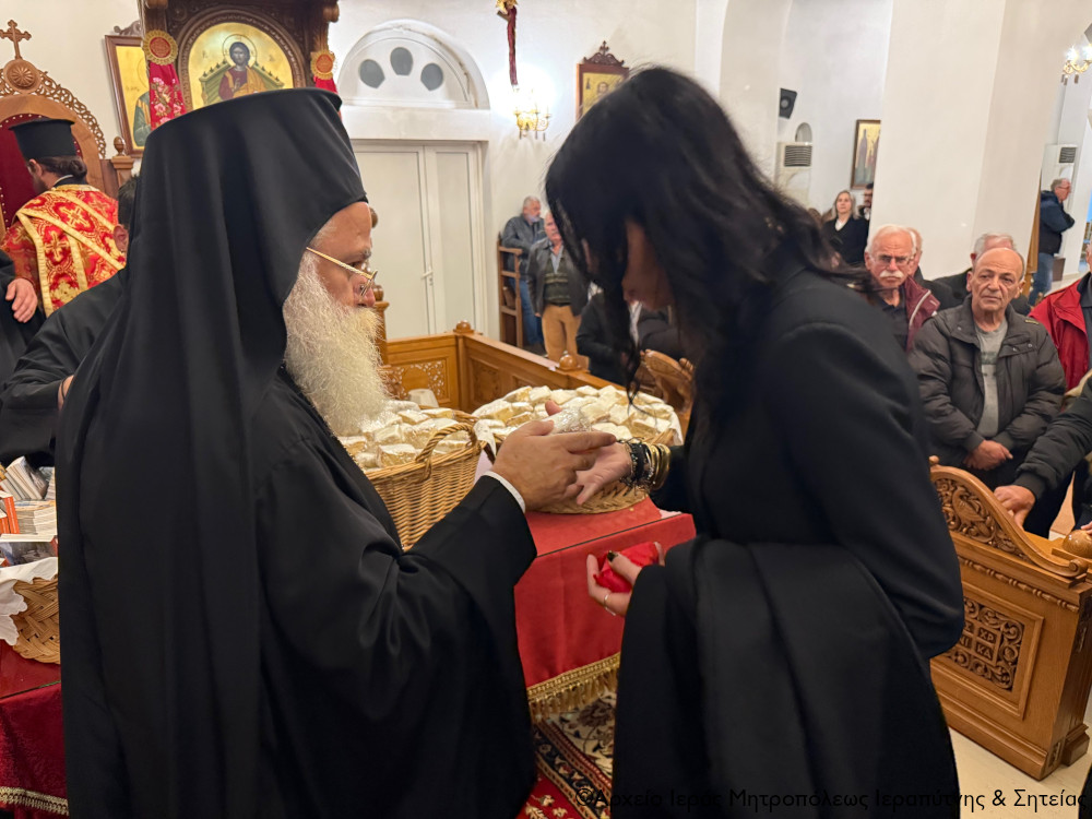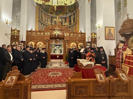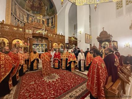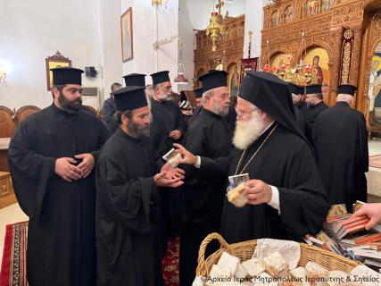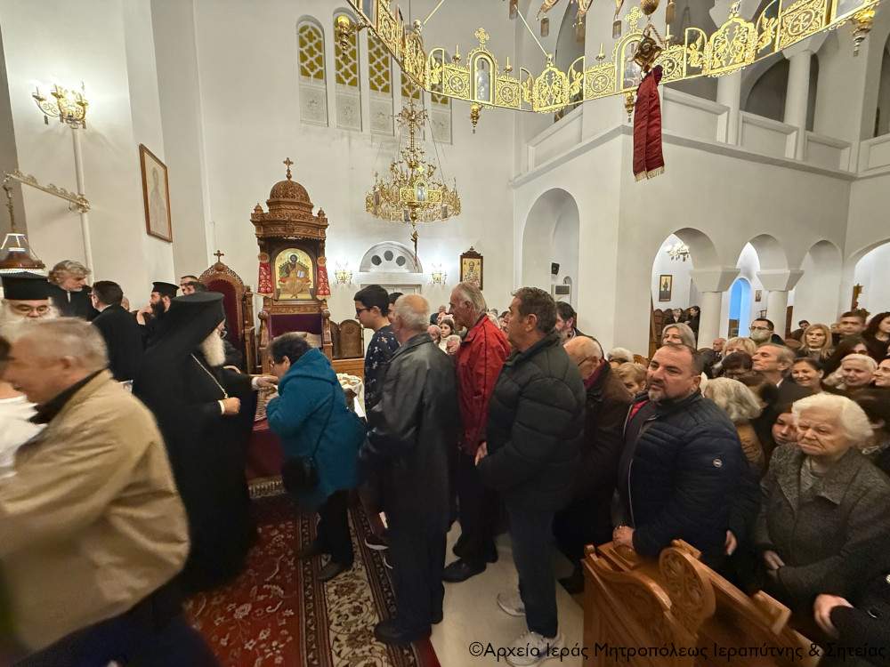 Στην ακολουθία του Αρχιερατικού Εσπερινού έλαβαν μέρος ο Πανοσιολ. Πρωτοσύγκελλος της Ι. Μητροπόλεως Αρχιμ. Αμβρόσιος Σκαρβέλης, ο Πανοσιολ. Ηγούμενος της Ι. Μονής Παναγίας Φανερωμένης Ιεράπετρας Αρχιμ. Παΐσιος Δερμιτζάκης, ο Πρόεδρος του Συνδέσμου Κληρικών της Ι. Μητροπόλεως Αιδεσιμολ. Πρωτ. Ιωάννης Νεστοράκης και σύσσωμος ο Ιερός Κλήρος της ευρύτερης περιοχής.