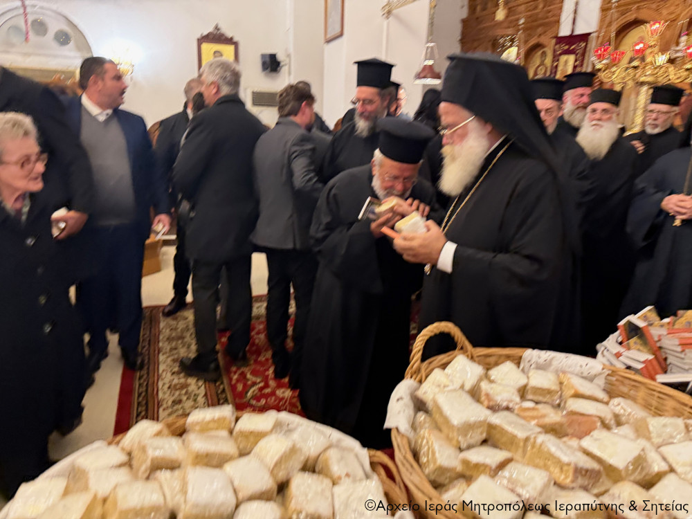 Σε εορταστική ατμόσφαιρα το βράδυ της Τετάρτης 31 Δεκεμβρίου 2025 ο Σεβ. Μητροπολίτης Ιεραπύτνης και Σητείας κ. Κύριλλος ευλόγησε και έκοψε τη Βασιλόπιτα της Ιεράς Μητροπόλεως στον κατάμεστο Ι. Καθεδρικό Ναό Αγίας Φωτεινής Ιεράπετρας, αφού προηγουμένως χοροστάτησε στην Ακολουθία του Μεγάλου Εσπερινού της εορτής της κατά σάρκα περιτομής του Κυρίου ημών Ιησού Χριστού και της μνήμης του Μεγάλου Βασιλείου.