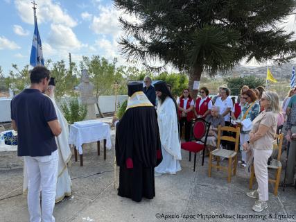 Ο Σεβ. Μητροπολίτης Ιεραπύτνης και Σητείας κ. Κύριλλος χοροστάτησε στην ακολουθία του Όρθρου, ευλόγησε τους προσφερόμενους άρτους και στη συνέχεια χοροστάτησε κατά την Θεία Λειτουργία, κήρυξε επίκαιρα τον θείο λόγο και τέλεσε το ιερό μνημόσυνο για τα θύματα της Μικρασιατικής Καταστροφής, μπροστά στο μνημείο, που έχει φιλοτεχνηθεί με δαπάνες του Συλλόγου Ελλήνων Μικρασιατών, Αρμενίων και Ποντίων Σητείας από το έτος 2001.