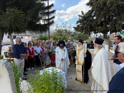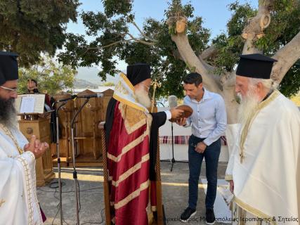 Στο σύντομο κήρυγμά του ο Σεβ. Μητροπολίτης κ. Κύριλλος μίλησε για το νόημα της ευαγγελικής περικοπής και τη σημασία της άρσεως του προσωπικού σταυρού από τον καθένα μας ελεύθερα και αβίαστα, όπως προστάζει ο Θεάνθρωπος Κύριος, προκειμένου να βιώσουμε και να εισέλθουμε στη Βασιλεία των ουρανών και να αναδειχθούμε αντάξιοι μαθητές Του. Eπεξήγησε τα λόγια του Κυρίου ότι όποιος και θελήσει να τον ακολουθήσει θα πρέπει να πάρει το σταυρό στον ώμο του και να απαρνηθεί τον εαυτό του, δηλ. τον παλαιό άνθρωπο των παθών και της αμαρτίας, για να βρει την αιώνια ζωή. Επίσης, υπενθύμισε την ανάγκη να διατηρήσουμε άσβεστη τη μνήμη των μακαριστών προπαρόρων μας που θυσιάστηκαν κατά τη Μικρασιατική Καταστροφή και να λαμβάνουμε δύναμη, ελπίδα και θάρρος από τη θυσιαστική διακονία και πορεία τους στην καθημερινή μας ζωή.