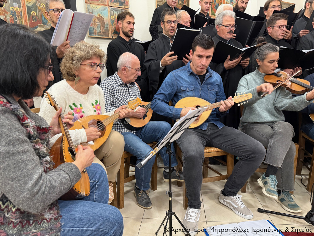 Με μεγάλη επιτυχία πραγματοποιήθηκε το βράδυ της Τετάρτης 17 Δεκεμβρίου 2025, στην κατάμεστη αίθουσα εκδηλώσεων του Ιερού Μητροπολιτικού Ναού Αγίου Γεωργίου Ιεράπετρας, η καθιερωμένη εκδήλωση των Σχολών Βυζαντινής Μουσικής και Αγιογραφίας και Ψηφιδωτού της Ιεράς Μητροπόλεως Ιεραπύτνης και Σητείας, ενόψει της εορτής των Χριστουγέννων.