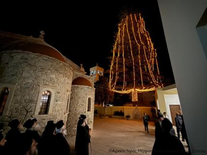 Επιπλέον ο Σεβ. κ. Κύριλλος ευχαρίστησε τον Δήμαρχο Ιεράπετρας κ. Εμμανουήλ Φραγκούλη που για πρώτη φορά, πριν την έναρξη της εκδήλωσης, φωταγώγησε με το υς συνεργάτες του Αντιδημάρχουςτο πανύψηλο και αρχοντικό δένδρο της αροκάριας, που δεσπόζει δίπλα στον έμβληματικό Ιερό Μητροπολιτκό Ναό, και τέλος απηύθυνε σε όλους καρδιακές ευχές για καλά και ευλογημένα Χριστούγεννα με τη χάρη του κατά σάρκα Γεννηθέντος Κυρίου μας Ι. Χριστού και μοίρασε Χριστουγεννιάτικές κάρτες.