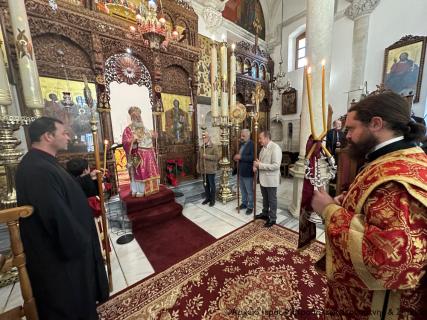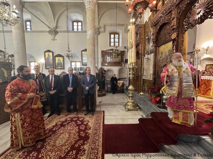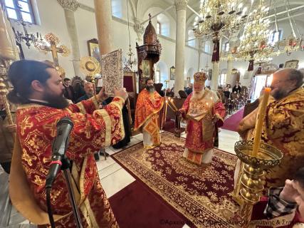 Στην Αρχιερατική Θεία Λειτουργία έλαβαν μέρος ο Πανοσιολ. Πρωτοσύγκελλος της Ι. Μητροπόλεως Αρχιμ. Αμβρόσιος Σκαρβέλης, ο Αιδεσιμολ. Εφημέριος και προϊστάμενος του ναού Πρωτ. Αθανάσιος Ταρλαντέζος και ο Διάκονος Θεμιστοκλής Μπεϊνάς, ενώ παρέστη συμπροσευχόμενος εκ του Ιερού Βήματος ο Πανοσιολ. Αρχιμανδρίτης του Οικουμενικού Θρόνου π. Χρυσόστομος Παπαδάκης.