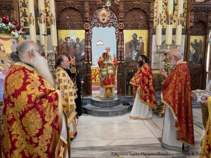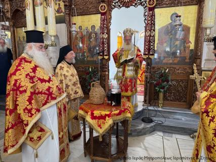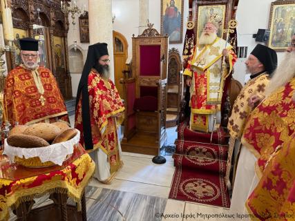 Την κυριώνυμο ημέρα της εορτής ο Σεβ. Μητροπολίτης Ιεραπύτνης και Σητείας κ. Κύριλλος χοροστάτησε στην ακολουθία του Όρθρου, ευλόγησε τους προσφερόμενους άρτους και στη συνέχεια ιερούργησε και κήρυξε κατάλληλα τον θείο λόγο.