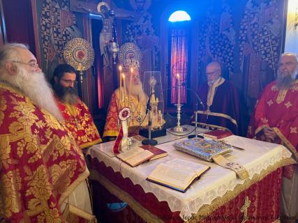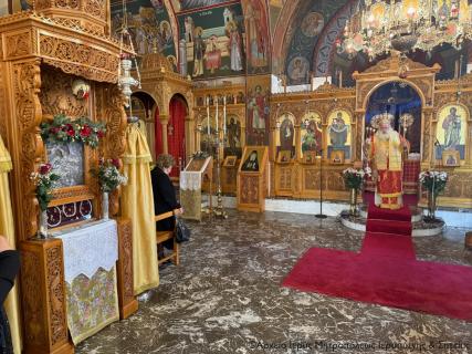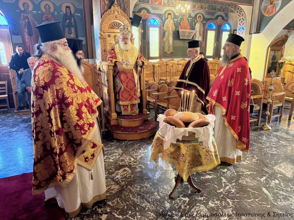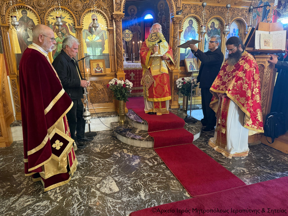 Ο Σεβ. Μητροπολίτης Ιεραπύτνης και Σητείας κ. Κύριλλος χοροστάτησε στην ακολουθία του Όρθρου, ευλόγησε τους προσφερόμενους άρτους και στη συνέχεια τέλεσε τη Θεία Λειτουργία και κήρυξε επίκαιρα τον θείο λόγο.