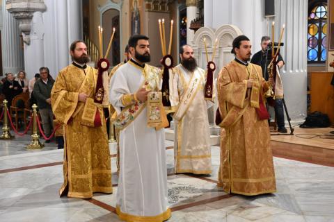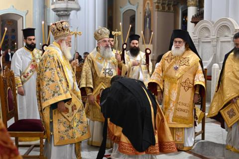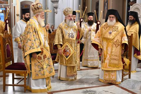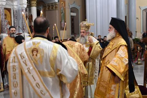 Συλλειτούργησαν οι Πανοσιολ. Πρωτοσύγκελλοι της Ιεράς Αρχιεπισκοπής Κρήτης Αρχιμ. Βαρθολομαίος Βογιατζόγλου και Ιεραπύτνης και Σητείας Αρχιμ. Αμβρόσιος Σκαρβέλης, ο Γενικός Αρχιερατικός Επίτροπος της Ιεράς Αρχιεπισκοπής Κρήτης Αρχιμ. Νικηφόρος Κουνάλης, Αρχιμανδρίτες, Πρεσβύτεροι και Διάκονοι, ενώ εκκλησιάστηκε πλήθος πιστών.