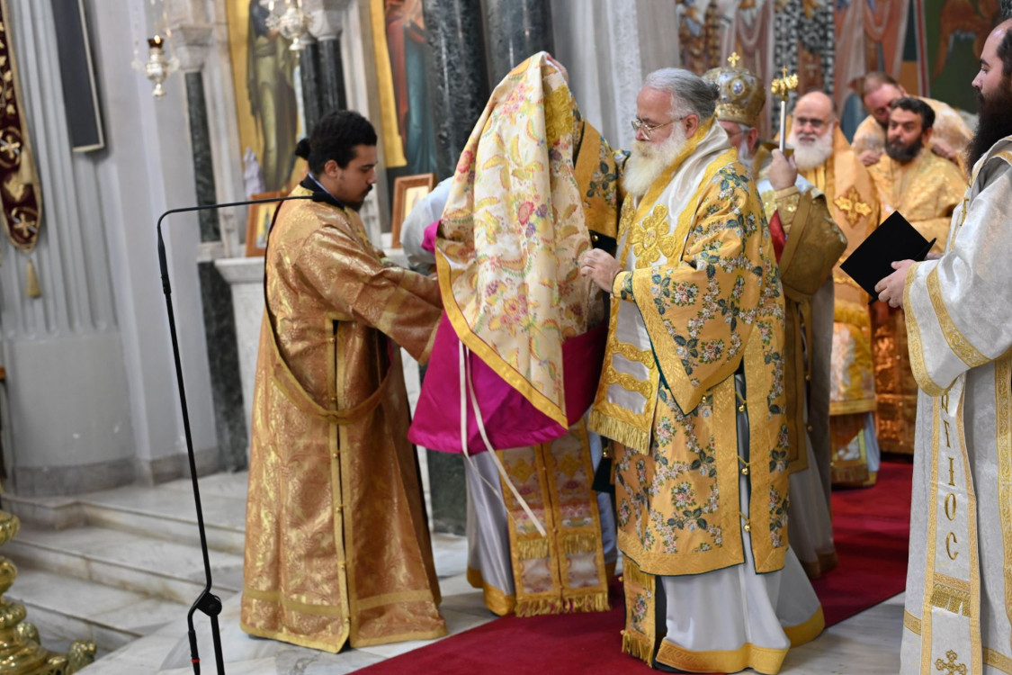 Πριν την Απόλυση, κατά προτροπή του Σεβ. Αρχιεπισκόπου κ. Ευγενίου, ο Σεβ. κ. Κύριλλος απένειμε το οφφίκιο του Οικονόμου στον νεοχειροτονηθέντα π. Ελευθέριο.