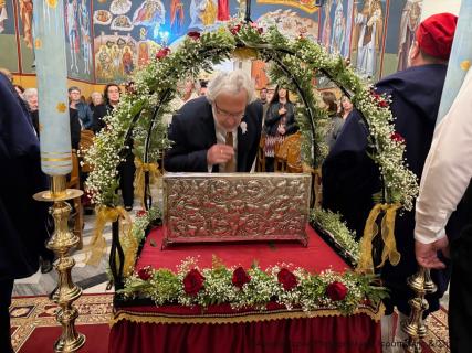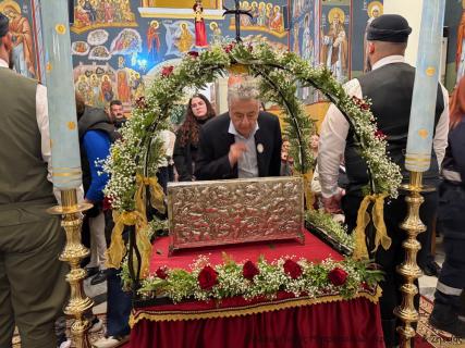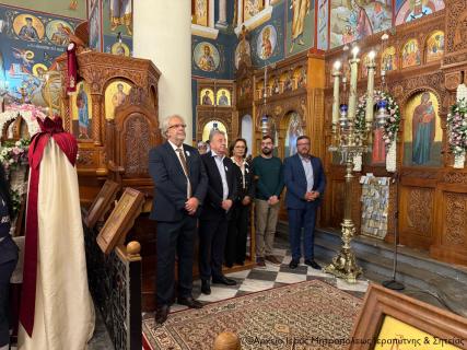 Στη υποδοχή των ιερών λειψάνων και στην Ακολουθία του Αρχιερατικού Εσπερινού έλαβαν μέρος ο Πανοσιολ. Πρωτοσύγκελλος της Ι. Μητροπόλεως και Ηγούμενος της Ι. Μονής Τοπλού Αρχιμ. Αμβρόσιος Σκαρβέλης, ο Ηγούμενος της Μονής Καψά Αρχιμ. Μεθόδιος Περάκης, ο Προηγούμενος της Μονής Τοπλού Αρχιμ. Φιλόθεος Σπανουδάκης, ο Γενικός Αρχιερατικός Επίτροπος της Ιεράς Μητροπόλεως Ρεθύμνης και Αυλοποτάμου πρωτ. Νικόλαος Νικηφόρος και οι Εφημέριοι αυτής πρωτ. Δημήτριος Τσακπίνης και πρωτ. Παναγιώτης Παπαδάκης, και πλειάδα Εφημερίων της περιοχής της Σητείας, ενώ εκκλησιάσθηκαν ο Δήμαρχος Σητείας κ. Γεώργιος Ζερβάκης, ο Περιφερειάρχης Κρήτης κ. Σταύρος Αρναουτάκης, η Πρόεδρος του Δημοτικού Συμβουλίου κ. Μαρία Νικητάκη, οι Αντιδήμαρχοι κ.κ. Ιωάννης Δασκαλάκης, Ιωάννης Καρνιαδάκης, Νικόλαος Φυγετάκης και Εμμανουήλ Δρακάκης και πλήθος ευσεβών χριστιανών της πόλης.