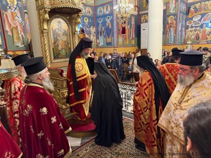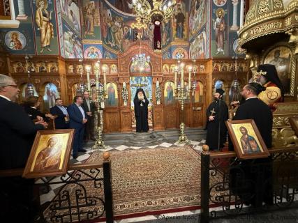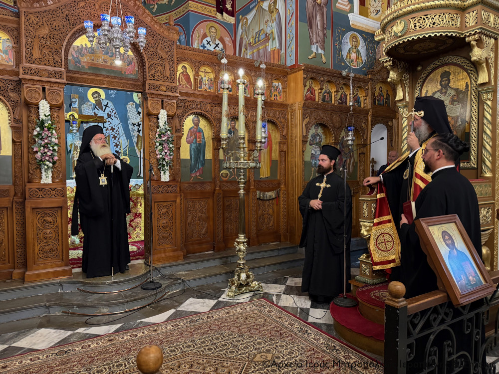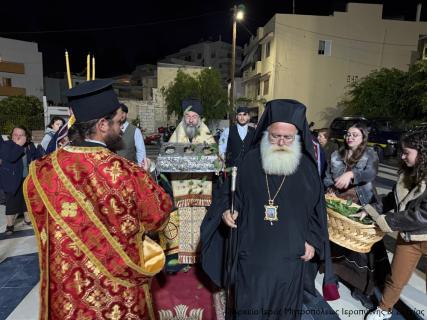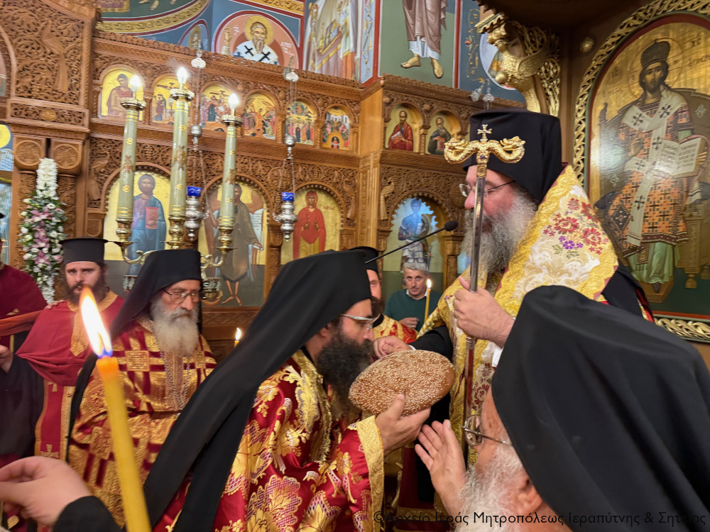 Ακολούθησε ο Μέγας πανηγυρικός Εσπερινός και η ευλόγηση των άρτων, χοροστατούντος του Σεβ. Μητροπολίτου Ρεθύμνης και Αυλοποτάμου κ. Προδρόμου, και συμπροσευχομένου εκ του Ιερού Βήματος του Σεβ. Μητροπολίτου Ιεραπύντης και Σητείας κ. Κυρίλλου.