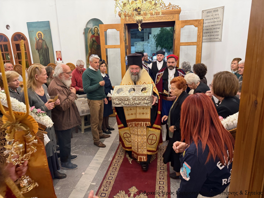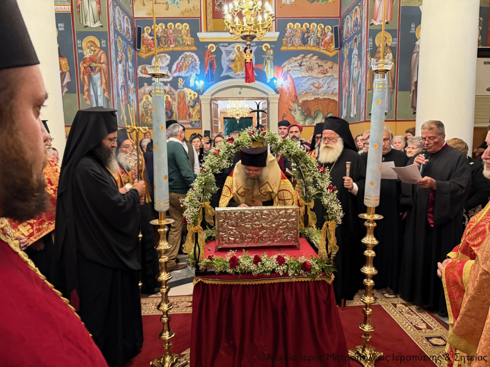 Με μεγάλη λαμπρότητα και σε κλίμα κατάνυξης και πνευματικής χαράς πραγματοποίηθηκε το απόγευμα της Δευτέρας 24 Νοεμβρίου 2025 η υποδοχή των Τιμίων Καρών των Αγίων Τεσσάρων Νεομαρτύρων των εν Ρεθύμνη μαρτυρησάντων στο προαύλιο του πανηγυρίζοντος Ιερού Καθεδρικού Ναού της Αγίας Μεγαλομάρτυρος και Πανσόφου και Νύμφης του Χριστού Αικατερίνης, πολιούχου και προστάτιδος της Σητείας, και στη συνέχεια ο Μέγας Πανηγυρικός Εσπερινός της εορτής της Αγίας.