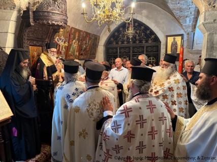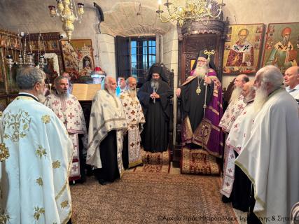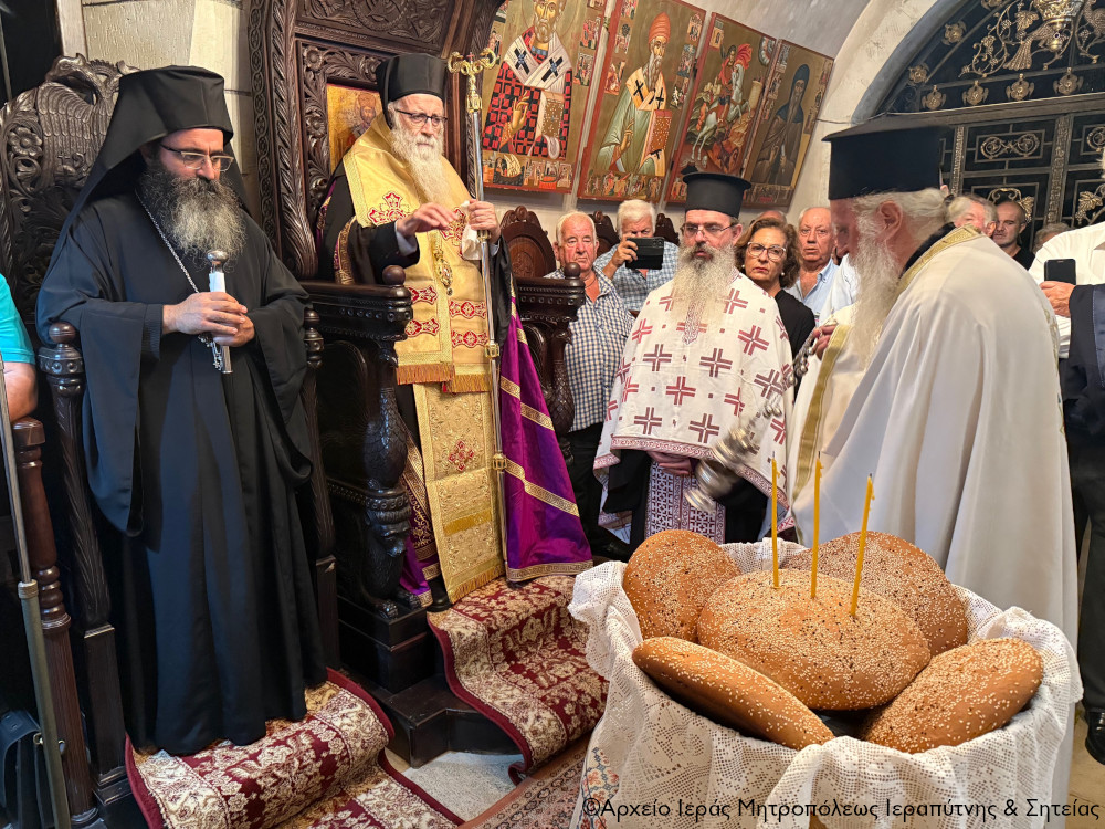 Στην ακολουθία χοροστάτησε, ευλόγησε τους άρτους και κήρυξε επίκαιρα τον θείο λόγο ο Σεβ. Μητροπολίτης Προικοννήσου κ. Ιωσήφ, συμπροσευχομένου του Σεβ. Μητροπολίτου Ιεραπύτνης και Σητείας κ. Κυρίλλου από το Ιερό Βήμα.