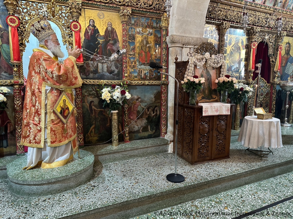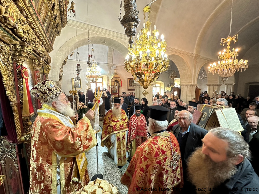 Την κυριώνυμο ημέρα της εορτής ο Σεβ. Μητροπολίτης Ιεραπύτνης και Σητείας κ. Kύριλλος χοροστάτησε στην ακολουθία του Όρθρου, ευλόγησε τους προσφερόμενους άρτους και στη συνέχεια ιερούργησε και κήρυξε επίκαιρα τον θείο λόγο.