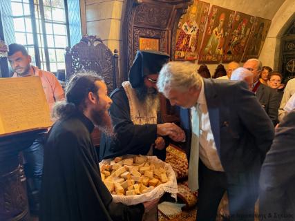 Ακολούθησε εόρτιο κέρασμα για όλο το εκκλησίασμα στο Αρχονταρίκι και γεύμα στην κατάγραφη τράπεζα του μοναστηριού.