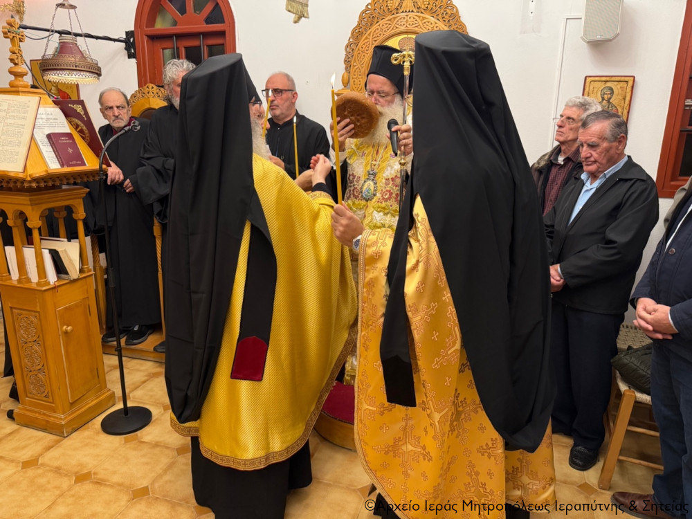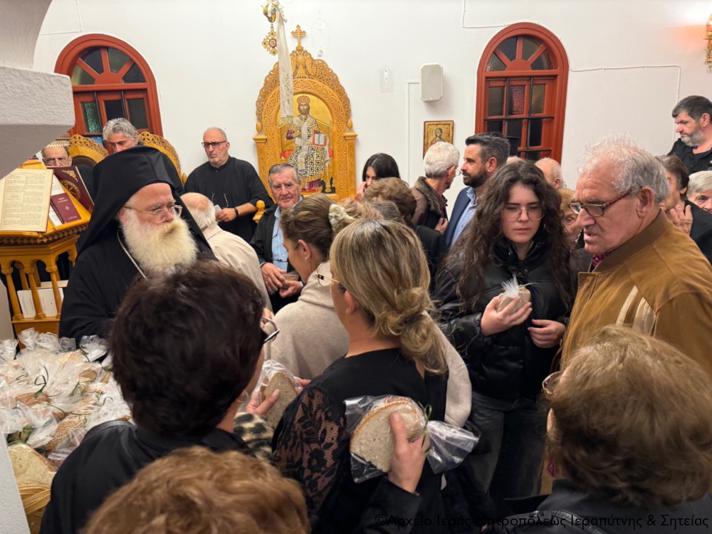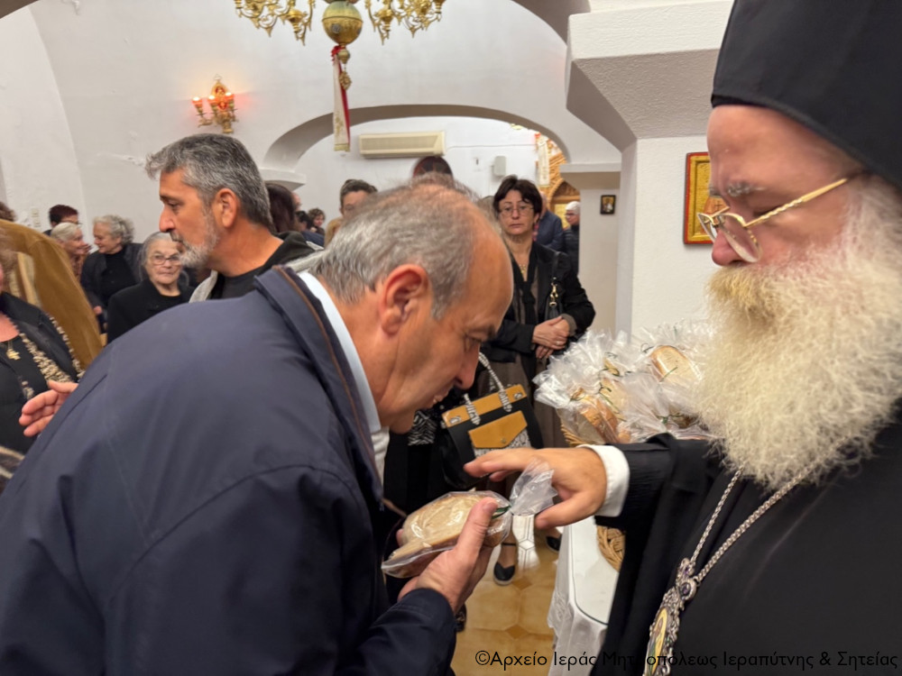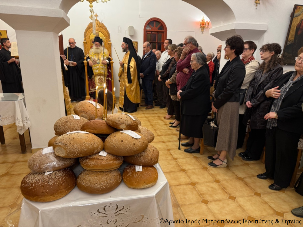 Στην ακολουθία χοροστάτησε ο Σεβ. Μητροπολίτης Ιεραπύτνης και Σητείας κ. Κύριλλος, ο οποίος ευλόγησε τους άρτους και κήρυξε επίκαιρα τον θείο λόγο.