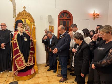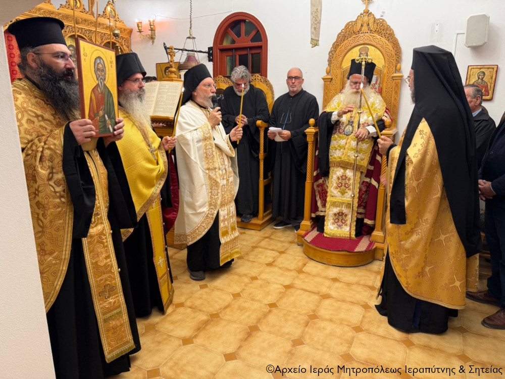 Με τη δέουσα λαμπρότητα τελέστηκε το απόγευμα του Σαββάτου 29 Νοεμβρίου 2025 ο Μέγας Αρχιερατικος Εσπερινός του Σαββάτου καί της εορτής του Αγίου Αποστόλου Ανδρέα στο φερώνυμο Παρεκκλήσιο της Ενορίας του Ι. Καθεδρικού Ναού Αγίας Φωτεινής στη θέση «Λιβάδια» Ιεράπετρας.