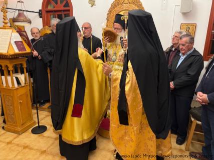 Στην ακολουθία του Αρχιερατικού Εσπερινού έλαβαν μέρος οι Πανοσιολ. Αρχιμ. Φιλήμων Μπέτσος, Φιλόθεος Δοργιάκης και Πορφύριος Αγγελάκης, ο Αιδεσιμ. Ιερεύς Γεώργιος Λογκάκης και ο Διάκονος Θεμιστοκλής Μπεϊνάς, ενώ στο αναλόγιο διακόνησαν ο Πρωτοψάλτης και Διευθυντής της Σχολής Βυζαντινής Μουσικής της Ι. Μητροπόλεως κ. Ιωάννης Αρώνης και οι ιεροψάλτες της Ενορίας κ. Σταύρος Δασκαλάκης και κ. Αναστάσιος Βασιλειάδης.