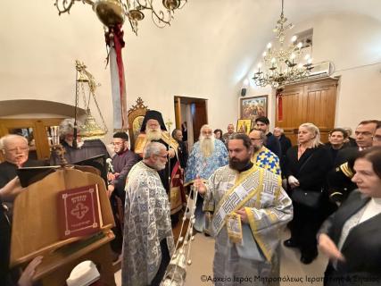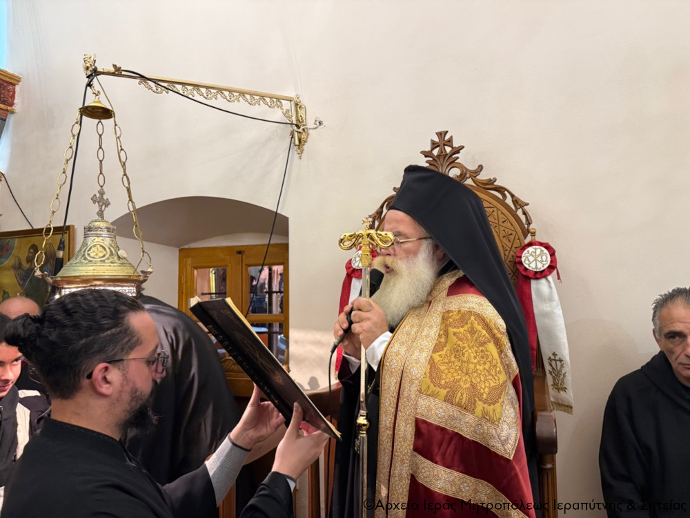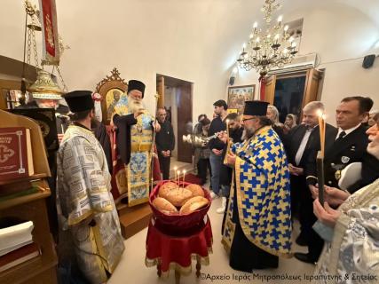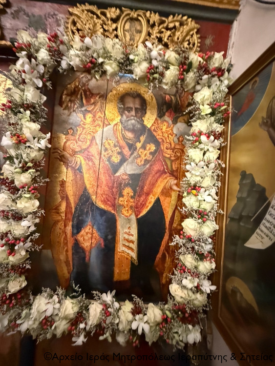 Με τη δέουσα λαμπρότητα και με ιεροπρέπεια τελέσθηκε το απόγευμα της Παρασκευής 5 Δεκεμβρίου 2025 η ακολουθία του Μεγάλου πανηγυρικού Εσπερινού της εορτής του Αγίου Νικολάου, Αρχιεπισκόπου Μύρων της Λυκίας, στον φερώνυμο ενετικό ναό της συνοικίας της Κάτω Μεράς Ιεράπετρας, παρεκκλήσιο της Ενορίας Μεταμορφώσεως του Σωτήρος πόλεως Ιεράπετρας. Στην ακολουθία χοροστάτησε ο Σεβ. Μητροπολίτης Ιεραπύτνης και Σητείας κ. Κύριλλος, ο οποίος κατά την τάξη ευλόγησε τους άρτους.