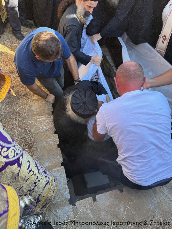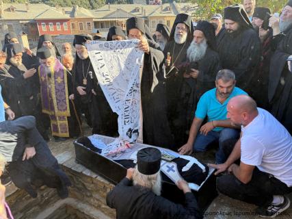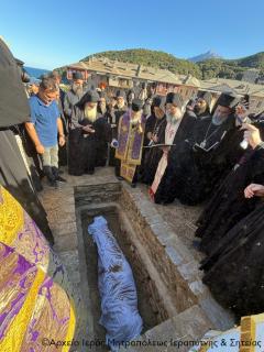Ακολούθησε σε κλίμα κατάνυξης και συγκίνησης η ταφή, κατά παραγγελία του Γέροντα, στο κοιμητήριο της Μονής.