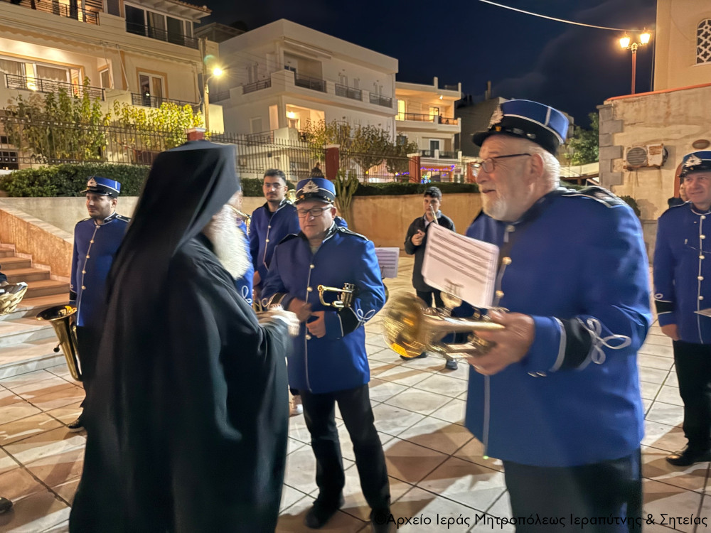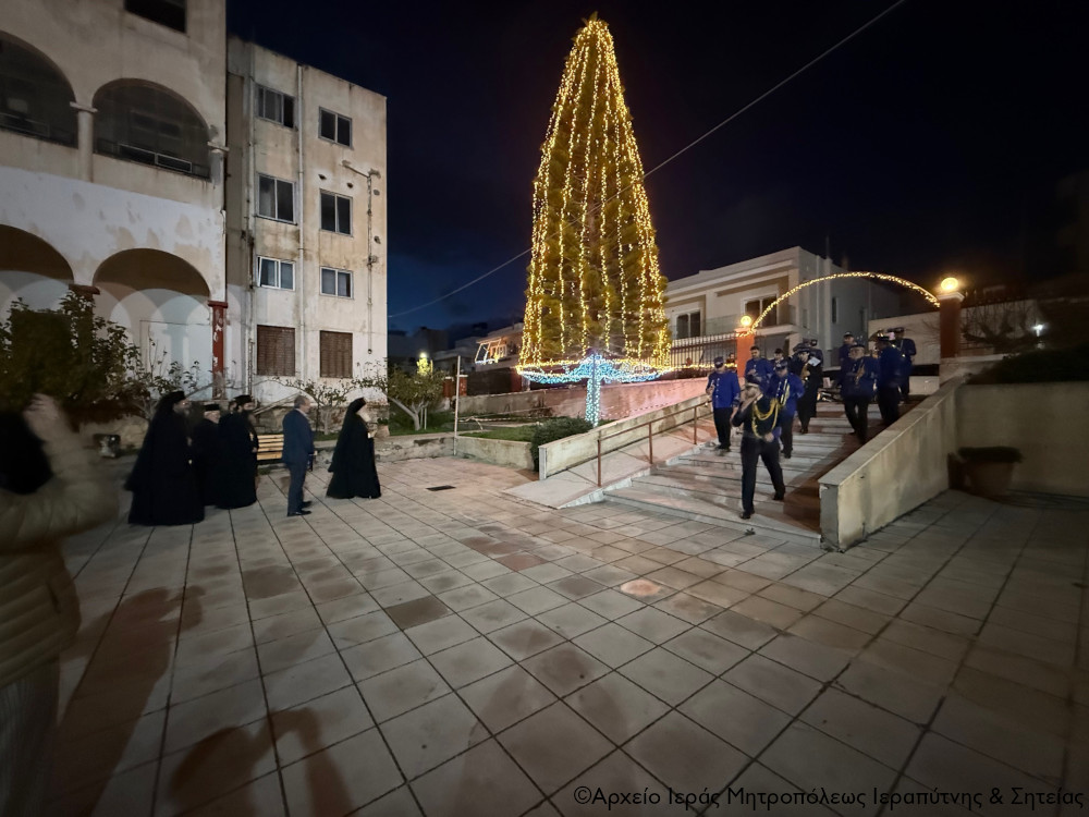 Το εσπέρας της παραμονής της Πρωτοχρονιάς 31 Δεκεμβρίου 2025 ο Σεβ. Μητροπολίτης Ιεραπύτνης και Σητείας κ. Κύριλλος πλαισιούμενος από τους Κληρικούς της Ιεράς Μητροπόλεως δέχθηκε τη Δημοτική Φιλαρμονική Ιεράπετρας στον αύλειο χώρο του Ιερού Καθεδρικού Ναού Αγίας Φωτεινής, λίγο πριν την ακολουθία του Εσπερινού, και άκουσε τα καθιερωμένα και πατροπαράδοτα κάλαντα της πρωτοχρονιάς.