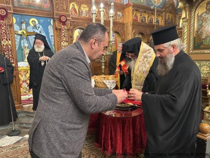 Η καθιερωμένη τελετή της κοπής της Βασιλόπιτας της Ιεράς Μητροπόλεως στην περιοχή της Σητείας έλαβε χώρα φέτος στον Ιερό Καθεδρικό Ναό Αγίας Αικατερίνης αργά το απόγευμα της Πέμπτης 2 Ιανουαρίου 2025. Προηγήθηκε η ακολουθία του Αρχιερατικού Εσπερινού της μνήμης του Προφήτου Μαλαχίου και του αγίου μάρτυρος Γορδίου, κατά τον οποίο χοροστάτησε ο παρεπιδημών κατ᾽ αυτάς στη γενέτειρά του Σητεία εκλεκτός και λόγιος Ιεράρχης του Οικουμενικού Θρόνου, Σεβ. Μητροπολίτης Προικοννήσου κ. Ιωσήφ, και έλαβαν μέρος ο Πρωτοσύγκελλος της Ιεράς Μητροπόλεως και Ηγούμενος της Σταυροπηγιακής Μονής Τοπλού Αρχιμ. Αμβρόσιος Σκαρβέλης, ο Ηγούμενος της Μονής Καψά Αρχιμ. Μεθόδιος Περάκης, και σύσσωμος ο Ιερός Κλήρος της πόλεως και της ευρύτερης περιοχής της Σητείας.
