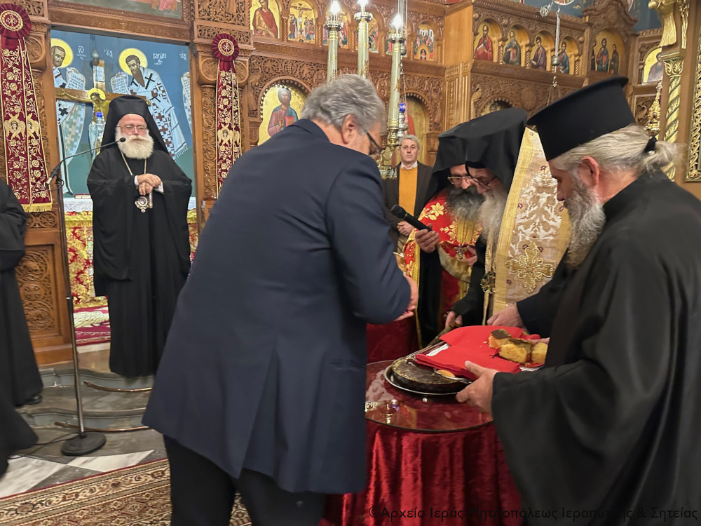 Ακολούθως, ευχαρίστησε τις παριστάμενες Αρχές, τον εντιμότατο Α´ Αντιπρόεδρο της Βουλής των Ελλήνων και Βουλευτή Λασιθίου συντοπίτη Σητειακό κ. Γιάννη Πλακιωτάκη, τον Δήμαρχο Σητείας κ. Γιώργο Ζερβάκη, τους Αντιδημάρχους και όλους τους εκπροσώπους των Αρχών και Φορεών για τη διαχρονική και αρμονική συνεργασία της Τοπικής Εκκλησίας και της Πολιτείας για την προαγωγή και πρόοδο της τοπικής κοινωνίας, αφού όπως τόνισε Εκκλησία και Δήμος υπηρετούμε τον ίδιο λαό.