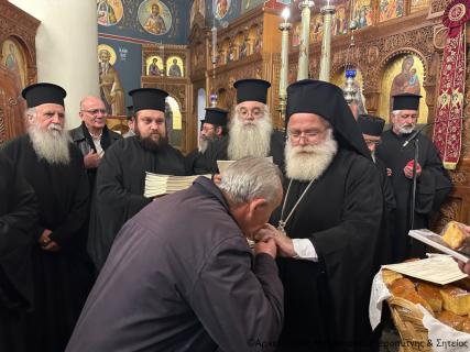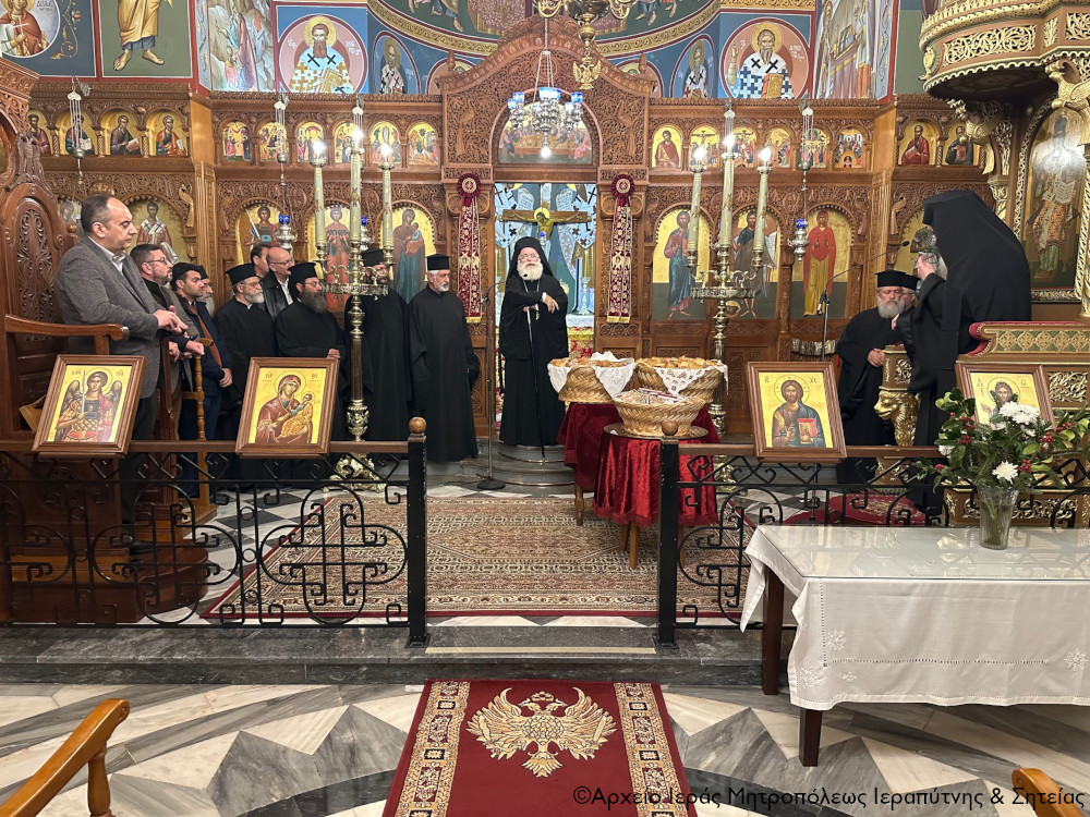 Εξέφρασε τις ευγνώμονες ευχαριστίες της Τοπικής Εκκλησίας προς τους Ιερείς, και ιδιαίτερα τους συνταξιούχους, οι οποίοι με ιεραποστολικό ζήλο εργάζονται ακούραστα με κρητικό φιλότιμο και κρατούν στα ερημωμένα χωριά μας την κανδήλα της πίστεως αναμμένη, χωρίς να υπολογίζουν κόπο, μόχθο και κούραση. Έπειτα καλοσώρισε και ευχαρίστησε τα νέα Μέλη των Εκκλησιαστικών Συμβουλίων, που αποτελούν τους άμεσους συνεργάτες του Εφημερίου στο έργο της διοικήσεως και διαχειρίσεως της Ενορίας. Επίσης, υπογράμμισε ότι η θέση του Εκκλησιαστικού Συμβούλου είναι τιμητική και άμισθη, και ότι το Μέλος του Εκκλησιαστικού Συμβουλίου είναι εκπρόσωπος του λαϊκού στοιχείου στην εκκλησιαστική διοίκηση. Η Ενορία, σύμφωνα με τον Κανονισμό 7/2015 της Ι. Επαρχιακής Συνόδου της Εκκλησίας Κρήτης «Περί Ιερών Ναών και Ενοριών της Ιεράς Αρχιεπισκοπής και των Ιερών Μητροπόλεων της Εκκλησίας Κρήτης», αποτελεί το βασικό κύτταρο της κανονικής οργανώσεως της εκκλησιαστικής ζωής, ενώ ως αυτοτελές Νομικό Πρόσωπο Δημοσίου Δικαίου (Ν.Π.Δ.Δ.) υπάγεται στις δεσμεύσεις του Δημοσίου Λογιστικού.