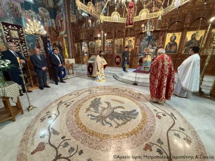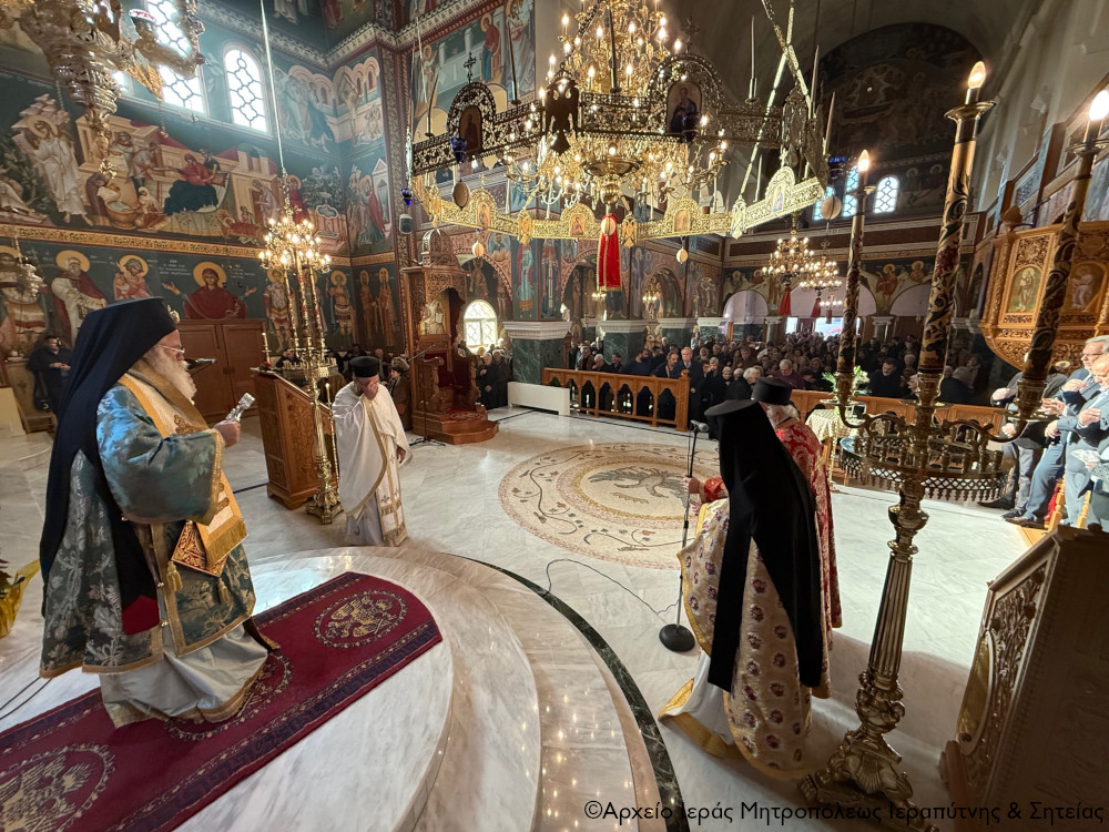 Μετά την απόλυση ο Σεβασμιώτατος ευχήθηκε εγκάρδια στο εκκλησίασμα χρόνια πολλά με τη χάρη και την ευλογία του «εν σπηλαίω γεννηθέντος και εν φάτνη ανακλιθέντος διά την ημών σωτηρίαν, Χριστού του αληθινού Θεού ημών» και συλλυπήθηκε τα τέκνα της αείμνηστης Ελευθερίας Κωνσταντίνο, ιατρό καρδιολόγο, Δέσποινα και Μαρία, και τους οικείους τους, ευχόμενος ο Κύριος της ζωής και του θανάτου να αναπαύσει την ψυχή της μετά των Αγίων και Δικαίων εν Χώρα Ζώντων.