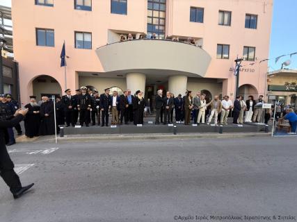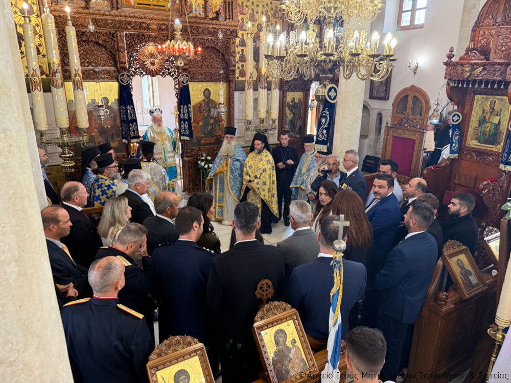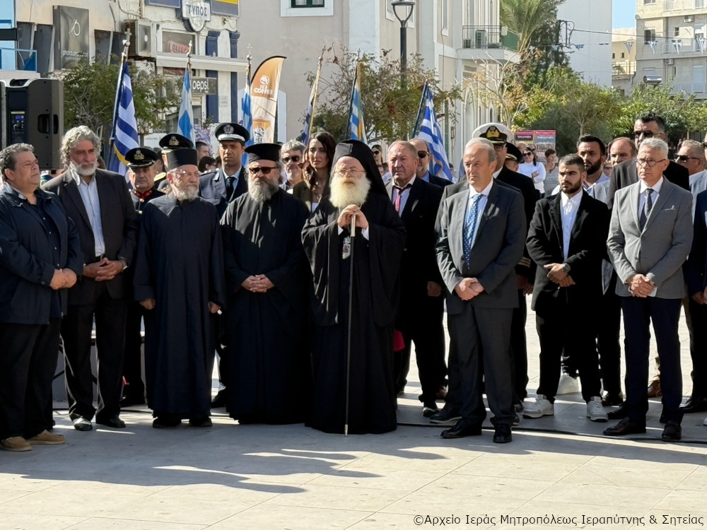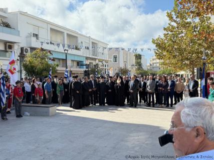 Μετά την Απόλυση της Θείας Λειτουργίας τελέσθηκε η επίσημη Δοξολογία για την εθνική επέτειο της 28ης Οκτωβρίου 1940, στην οποία προέστη ο Σεβ. Μητροπολίτης κ. Κύριλλος και έλαβε μέρος σύσσωμος ο Ιερός Κλήρος της πόλεως, με την παρουσία των εκπροσώπων των τοπικών Αρχών, των Ενόπλων Δυνάμεων και των Σωμάτων Ασφαλείας, των Διευθυντών, των σημαιοφόρων και των παραστατών της σημαίας των σχολείων της Πρωτοβάθμιας και της Δευτεροβάθμιας Εκπαίδευσης, των λοιπών φορέων και των σωματείων της Ιεράπετρας.