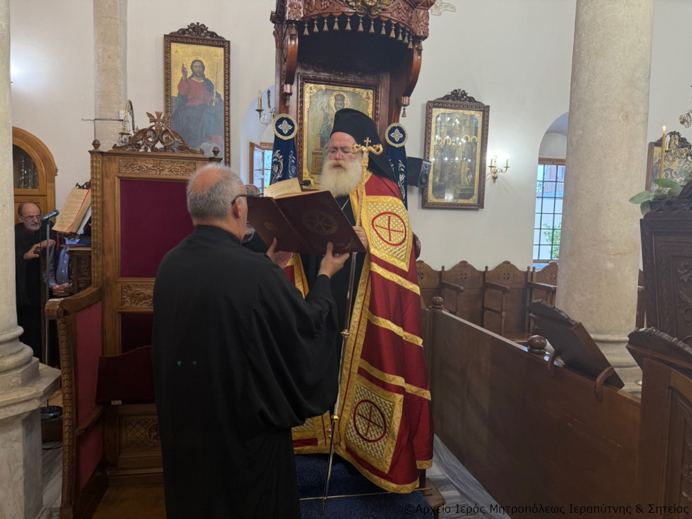 Ο Σεβ. Μητροπολίτης Ιεραπύτνης και Σητείας κ. Κύριλλος χοροστάτησε στην ακολουθία του Όρθρου και στη συνέχεια ιερούργησε στον Ιερό Μητροπολιτικό Ναό Αγίου Γεωργίου Ιεράπετρας.