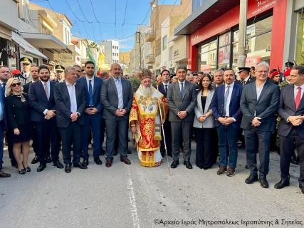 Στις εορταστικές εκδηλώσεις προς τιμήν του Αγίου Μεγαλομάρτυρος Μηνά παρέστησαν ο Περιφερειάρχης Κρήτης κ. Σταύρος Αρναουτάκης, ο Δήμαρχος Ηρακλείου κ. Αλέξης Καλοκαιρινός, Βουλευτές του Νομού Ηρακλείου, Αντιπεριφερειάρχες, Αντιδήμαρχοι και άλλοι εκπρόσωποι της Περιφερειακής και Τοπικής Αυτοδιοίκησης, οι επικεφαλής των τοπικών Στρατιωτικών και Αστυνομικών Αρχών και άλλοι εκπρόσωποι Αρχών και Φορέων του τόπου.