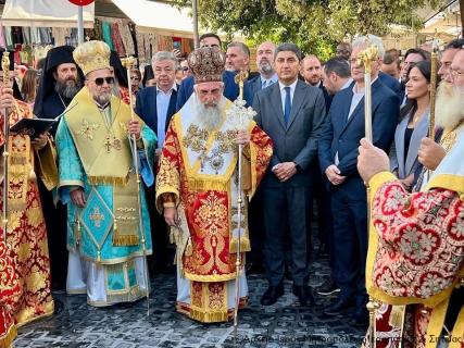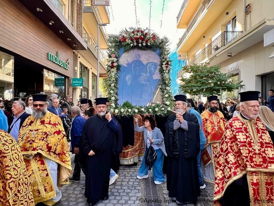 Στη συνέχεια ακολούθησε η καθιερωμένη λιτάνευση της ιεράς εικόνας και των ιερών λειψάνων του Αγίου Μηνά στους κεντρικούς δρόμους της πόλεως.