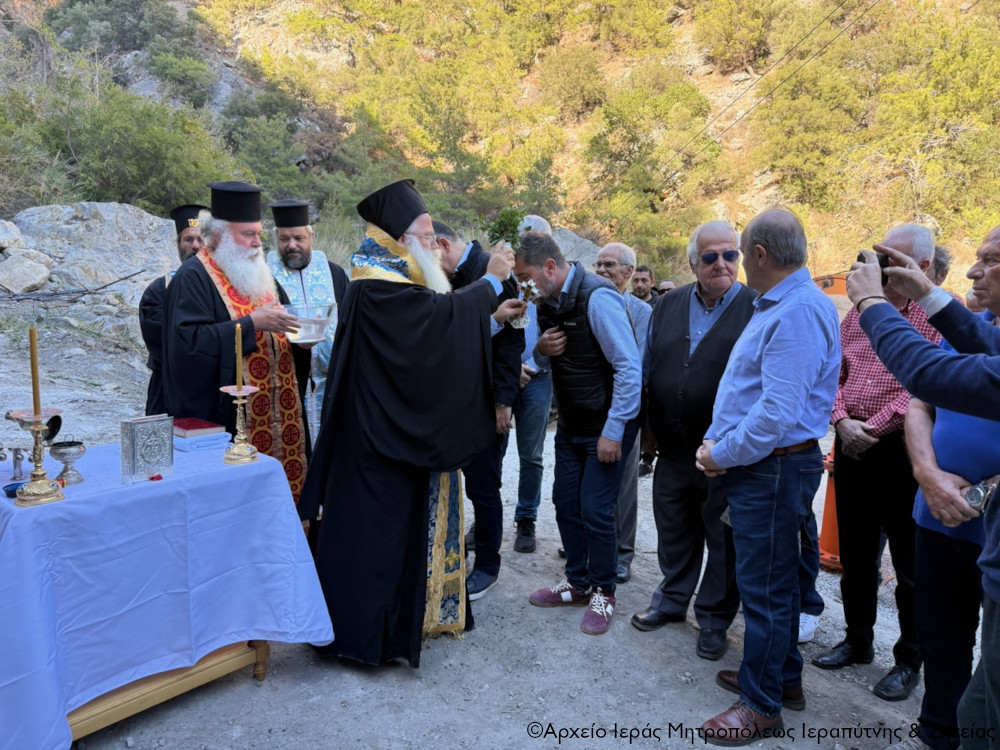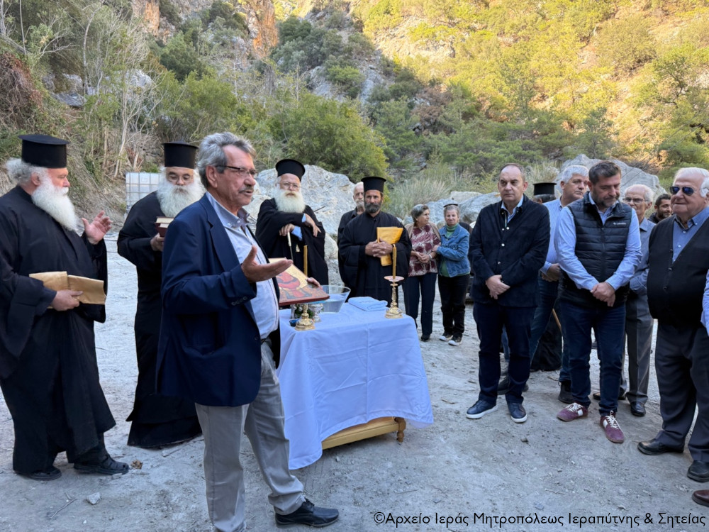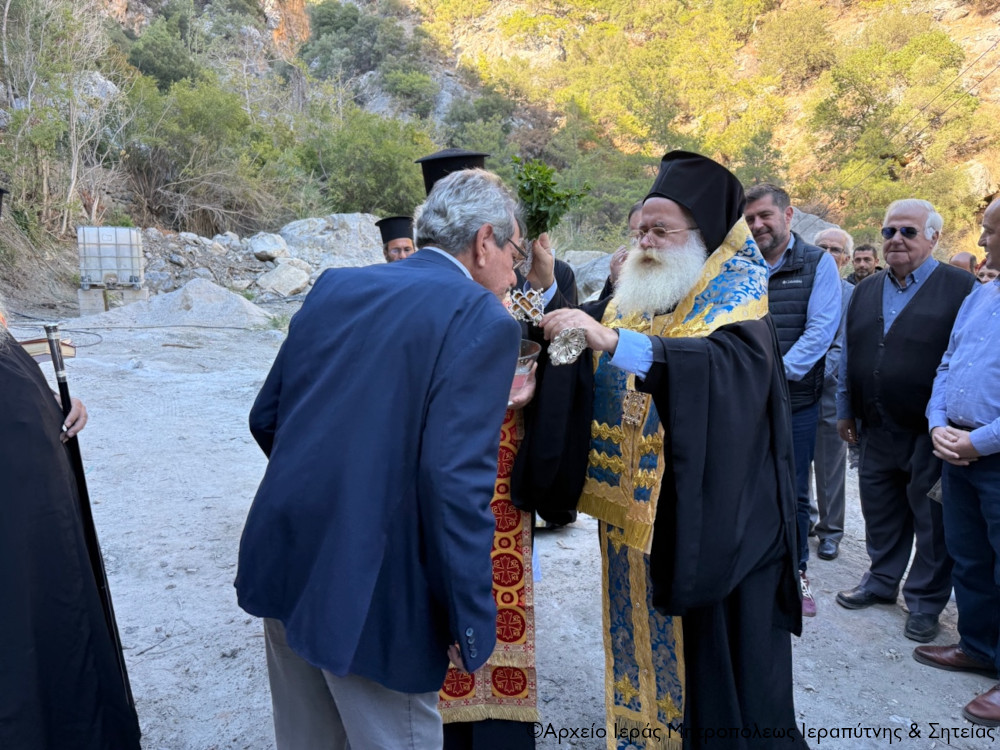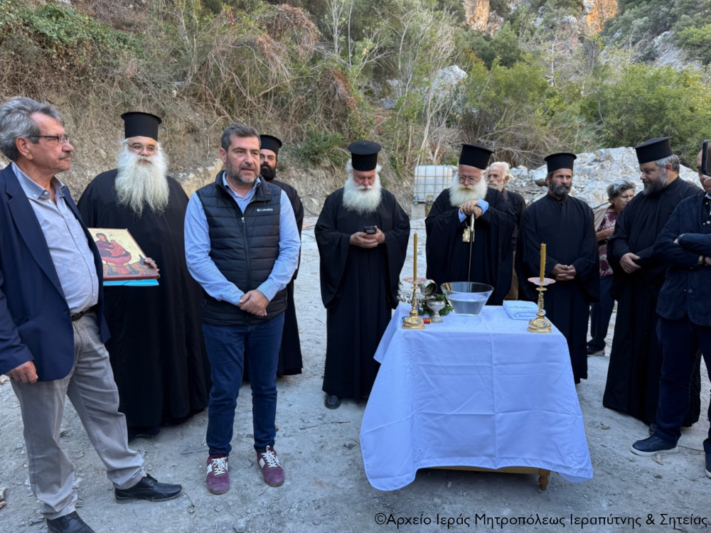 Μετά την ευλόγηση των εγκαταστάσεων του νέου και εμβληματικού έργου για την μεγαλύτερη αγροτική περιοχή της χώρας μας στην καλλιέργεια των πρώιμων κηπευτικών, ο Σεβ. συνεχάρη ολόψυχα τους συντελεστές του: τον Πρόεδρο του ΤΟΕΒ κ. Γεώργιο Καραλάκη και τους συνεργάτες του, τον παριστάμενο Α´ Αντιπρόεδρο της Βουλής και Βουλευτή Λασιθίου κ. Ιωάννη Πλακιωτάκη για την εξασφάλιση της χρηματοδότησης, τον Δήμαρχο Ιεράπετρας κ. Εμμανουήλ Φραγκούλη και της υπηρεσίες του Δήμου, τον Αντιπεριφερειάρχη Λασιθίου κ. Ιωάννη Ανδρουλάκη και τις υπηρεσίες της Περιφέρειας Κρήτης και ιδιαιτέρως τον Εφημέριο Ανατολής και Μηχανολόγο Μηχανικό π. Ματθαίο Πατεράκη, που είχε την τεχνική επίβλεψη όλου του έργου. Σημείωσε δε ότι η άψογη συνεργασία και συνέργεια όλων των Φορέων είχε το αίσιο αυτό αποτέλεσμα και την ιδιαίτερη ευλογία του Θεού, ώστε να εμπλουτίζεται το φράγμα της Ιεράπετρας με επιπλέον εξακόσια περίπου κυβικά καθαρό νερό την ώρα και δώρισε μία εικόνα της Ζωοδόχου Πηγής στον κ. Καραλάκη για να προστατεύει και να σκεπάζει πάντοτε η Παναγία αυτό το μεγάλο έργο.