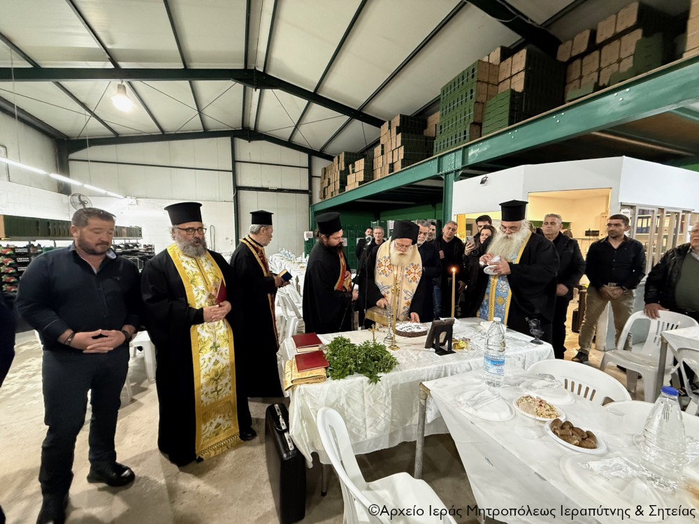 Το βράδυ της Πέμπτης 13 Φεβρουαρίου 2026, ο Σεβ. Μητροπολίτης Ιεραπύτνης και Σητείας κ. Κύριλλος ανταποκρινόμενος και φέτος σε ευγενή πρόσκληση του Προέδρου και των Μελών του Δ.Σ. της Ομάδας Παραγωγών πρώιμων κηπευτικών Ιεράπετρας «Κρητικό Περιβόλι», μετέβη στις υπερσύγχρονες εγκαταστάσεις τους στο Κεντρί Ιεράπετρας, τέλεσε τον καθιερωμένο Αγιασμό και ευλόγησε την Βασιλόπιτα για το νέο έτος.