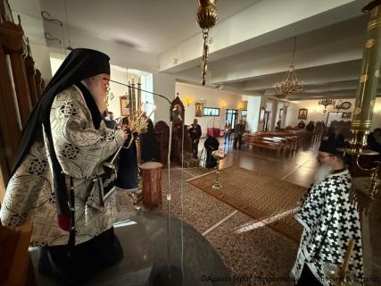 Προηγήθηκαν οι ακολουθίες του Μεσονυκτικού, του Όρθρου και των Ωρών, και ακολούθησε ο Αρχιερατικός Εσπερινός και η Προηγιασμένη Θεία Λειτουργία, στο τέλος της οποίας ο Σεβασμιώτατος κ. Κύριλλος ευχήθηκε εγκάρδια καλό και ευλογημένο το ιερό στάδιο της Μεγάλης Τεσσαρακοστής καλή και ευλογημένη Αγία και Μεγάλη Τεσσαρακοστή, και διένειμε το αντίδωρο στο εκκλησίασμα.