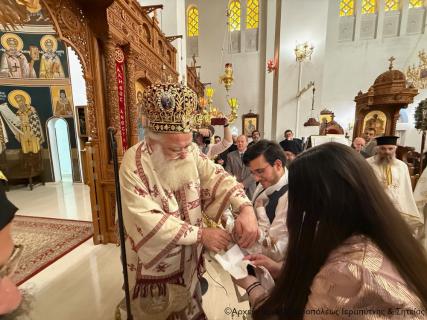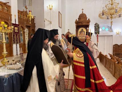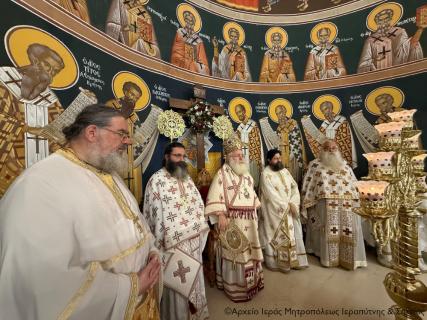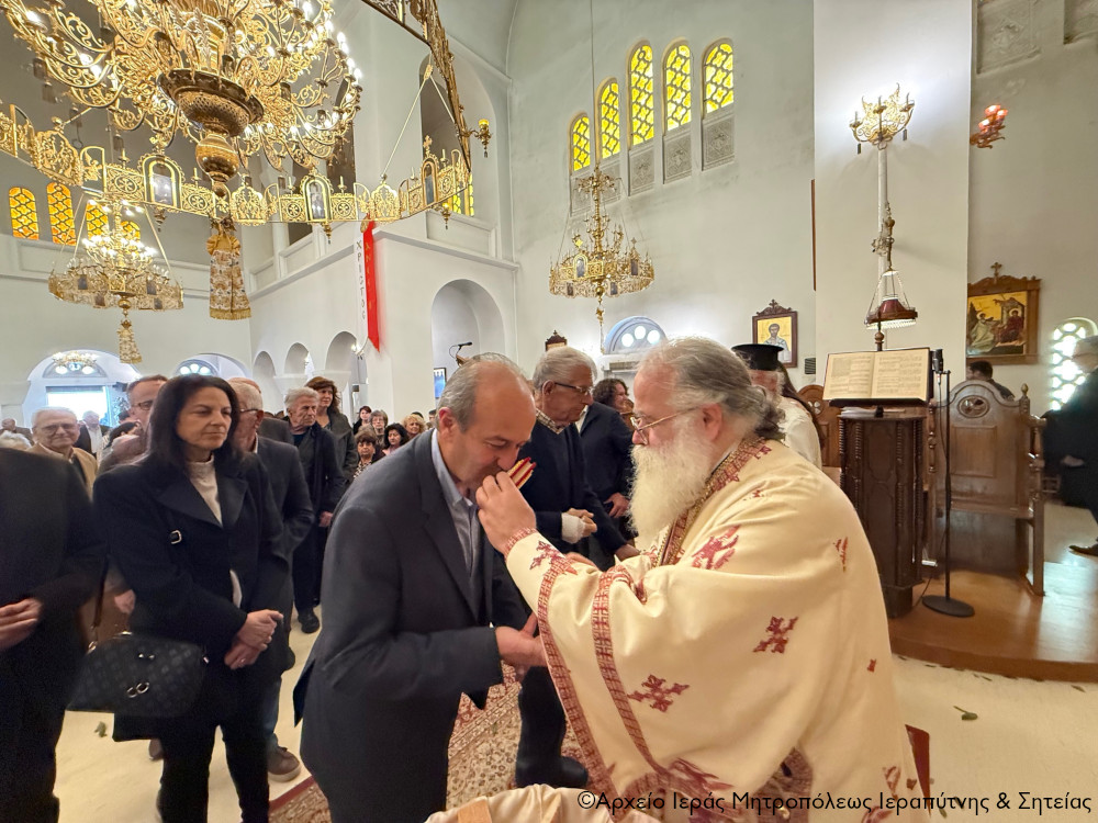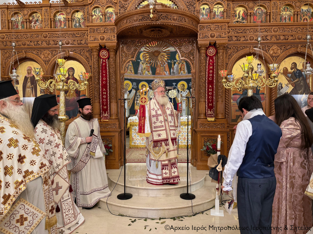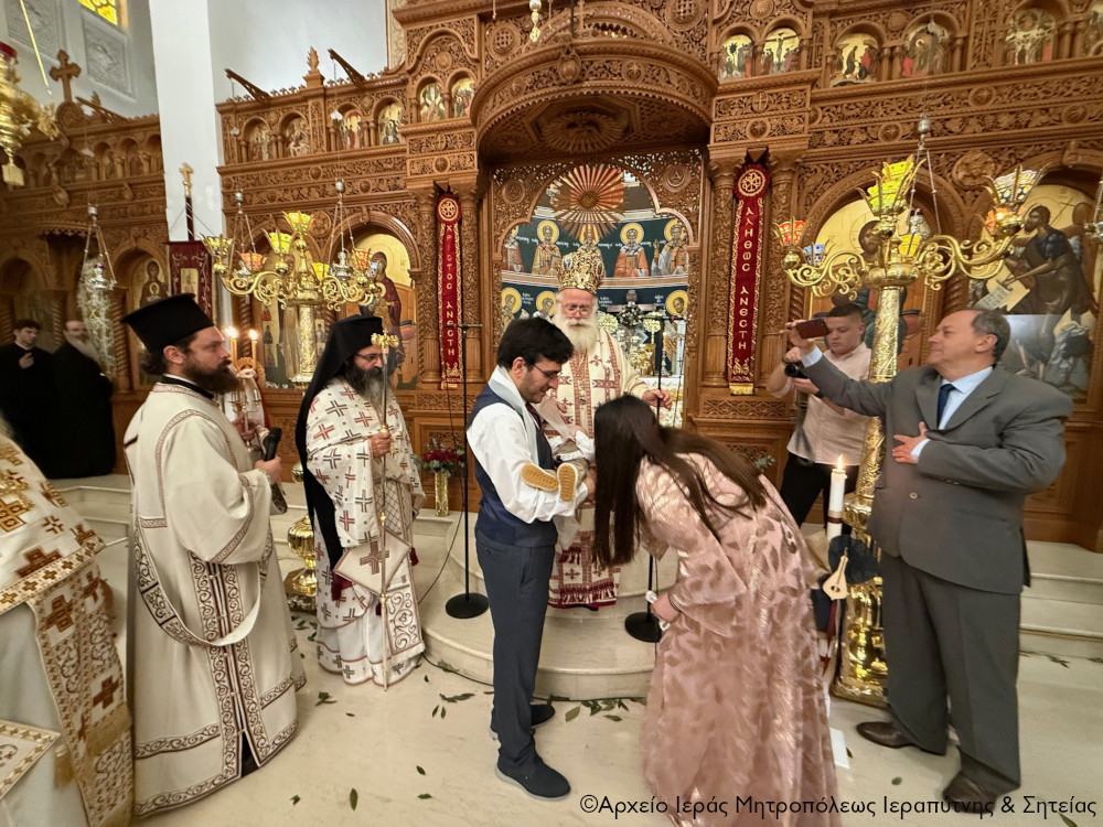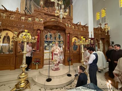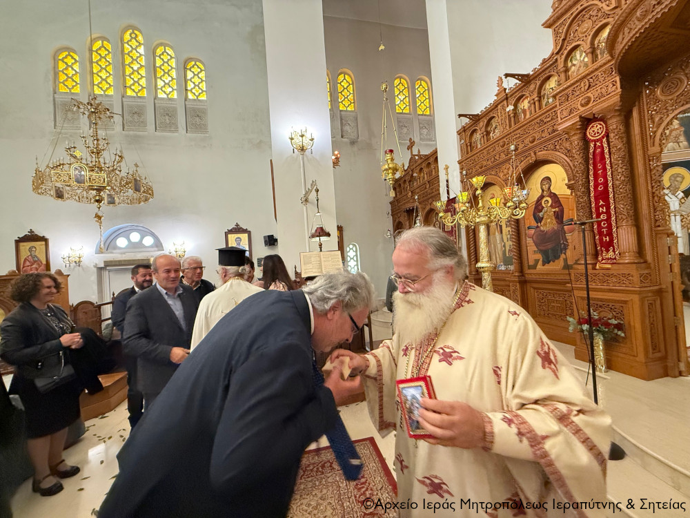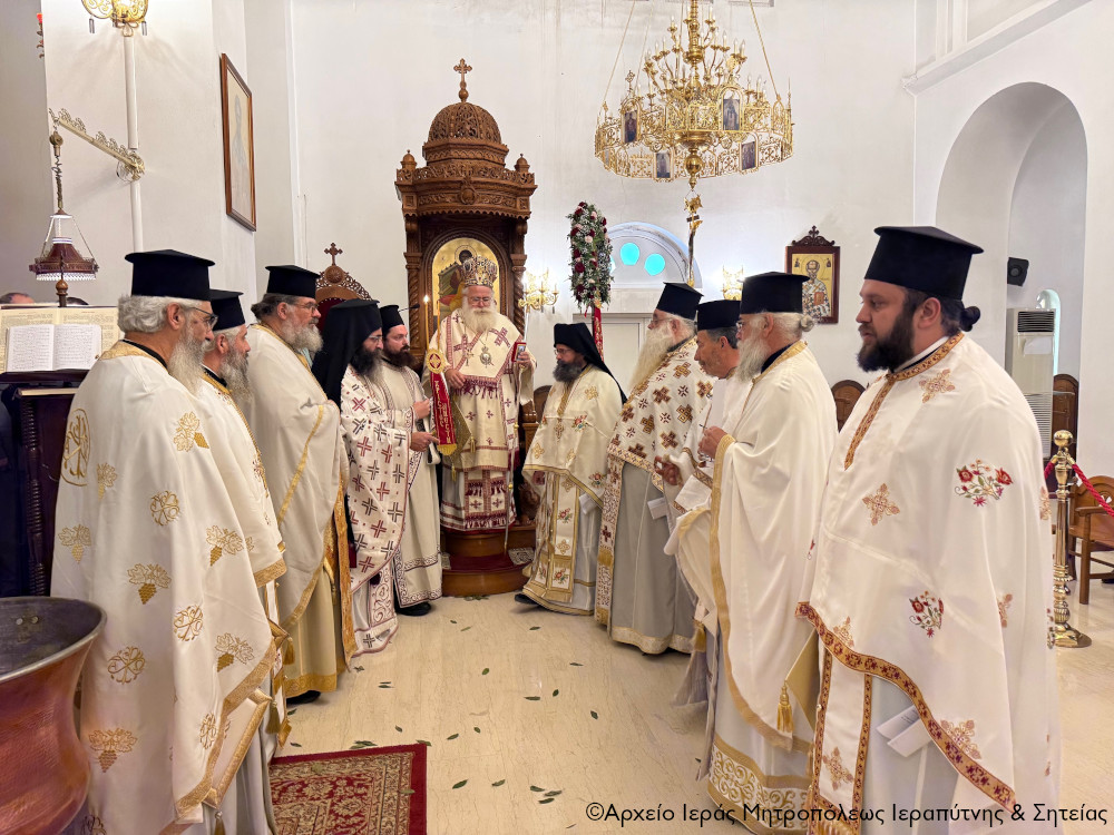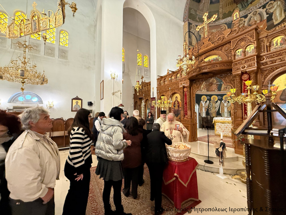 Το πρωί της Πέμπτης της Διακαινησίμου Εβδομάδος, 16 Απριλίου 2026, ο Σεβ. Μητροπολίτης Ιεραπύτνης και Σητείας κ. Κύριλλος χοροστάτησε στην Ακολουθία του Όρθρου και στη συνέχεια ιερούργησε στον Ιερό Καθεδρικό Ναό Αγίας Φωτεινής πόλεως Ιεράπετρας. Κατά τη διάρκεια της Αναστάσιμης Θείας Λειτουργίας, ο Σεβασμιώτατος τέλεσε τη βάπτιση του υιού του Διακόνου π. Θεμιστοκλή Μπεϊνά και της διακόνισσας Δωροθέας Κρητικού, που έλαβε το όνομα Μηνάς.