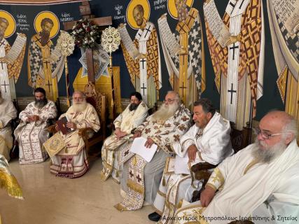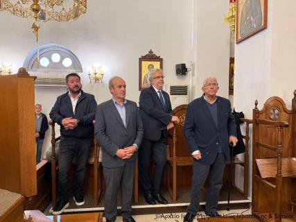 Στην Αρχιερατική Θεία Λειτουργία έλαβαν μέρος ο Πανοσιολ. Αρχιμ. Αμβρόσιος Σκαρβέλης, Πρωτοσύγκελλος της Ι. Μητροπόλεως, ο Πανοσιολ. Αρχιμ. Παΐσιος Δερμιτζάκης, Ηγούμενος της Ι. Μονής Φανερωμένης Ιεράπετρας, ο Αιδεσιμολ. Πρωτ. Κωνσταντίνος Πετάσης, Εφημέριος της Ιεράς Αρχιεπισκοπής Αθηνών, ο Αιδεσιμ. Πρωτ Σάββας Λιναρδάκης, Εφημέριος της Ενορίας Παναγίας Ελεούσας Ιεράπετρας, ο Αιδεσιμ. Πρωτ. Νικόλαος Παθιάκης, Εφημέριος της Ενορίας του Ι. Καθεδρικού Ναού Αγίας Αικατερίνης Σητείας, ο Αιδ/τος Οικονόμος π. Παντελεήμων Καββουσανός, Εφημέριος της Ενορίας Κάτω Χωριού, ο Αιδ/τος Οικονόμος π/ Γεώργιος Μανθαιάκης, Εφημέριος της Ενορίας Μεσελέρων, ο Αιδ/τος Οικονόμος π. Μηνάς Κρητικός, Εφημέριος της Ενορίας Κουτσουρά, ο Αιδ/τος Οικονόμος π. Γεώργιος Μονιός, Εφημέριος της Ενορίας Χανδρά, και ο Ιερολ. Διάκονος Θεμιστοκλής Μπεϊνάς, ενώ συμπροσευχόμενοι ήταν οι Εφημέριοι του ναού, του Πανοσιολ. Αρχιμ. Πορφύρος Αγγελλάκης και Αιδεσιμ. Ιερεύς Γεώργιος Λογκάκης, καθώς και ο Εφημέριος του Ι. Μ. Ναού Αγίου Γεωργίου Ιεράπετρας Αιδεσιμολ. Πρωτ. Αθανάσιος Ταρλαντέζος. Ανάμεσα στους παρευρεθέντες συγγενείς και φίλους ήταν ο Δήμαρχος Ιεράπετρας κ. Εμμανουήλ Φραγκούλης, ο Δήμαρχος Σητείας κ. Γεώργιος Ζερβάκης, ο πρώην Δήμαρχος Ιεράπετρας κ. Νικόλαος Χριστοφακάκης, ο Αντιδήμαρχος Ιεράπετρας κ. Νεκτάριος Παπαδάκης και ο Διοικητής του Τμήματος Ασφάλειας Ιεράπετρας κ. Νεκτάριος Φρονιμάκης.