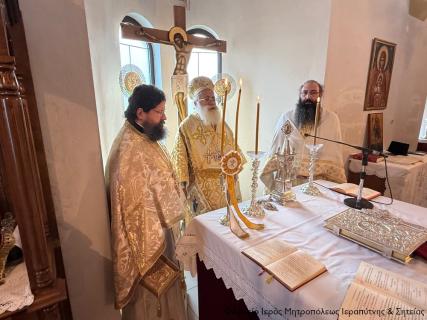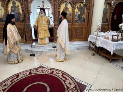 Στην Αρχιερατική Θεία Λειτουργία έλαβαν μέρος ο Πανοσιολ. Αρχιμ. Παΐσιος Δερμιτζάκης, Εφημέριος της Ενορίας και Ηγούμενος της Ι. Μονής Φανερωμένης Ιεράπετρας, ο Αιδεσιμ. Ιερεύς Γεώργιος Λογκάκης, και ο Διάκονος Θεμιστοκλής Μπεϊνάς.