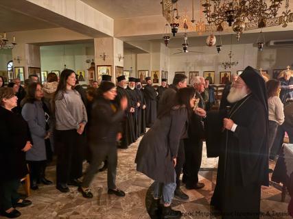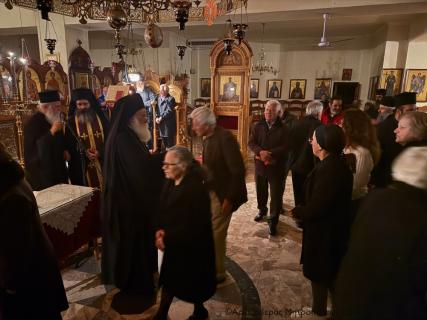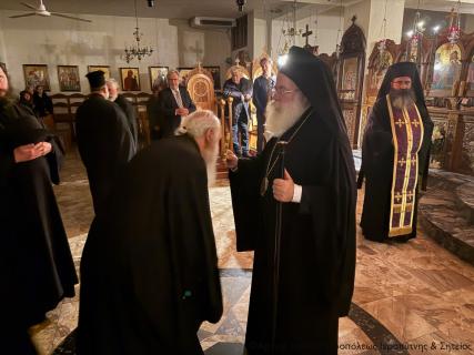 Στην ακολουθία του Κατανυκτικού Εσπερινού, που τέλεσε ο Πανοσιολ. Πρωτοσύγκελλος Αρχιμ. Αμβρόσιος Σκαρβέλης, μετείχε ο Ιερός Κλήρος της ευρύτερης περιοχής, ενώ εκκλησιάσθηκαν και παρακολούθησαν την ομιλία πολλοί ευσεβείς χριστιανοί, ανάμεσα στους οποίους ήταν ο Δήμαρχος Σητείας κ. Γεώργιος Ζερβάκης.