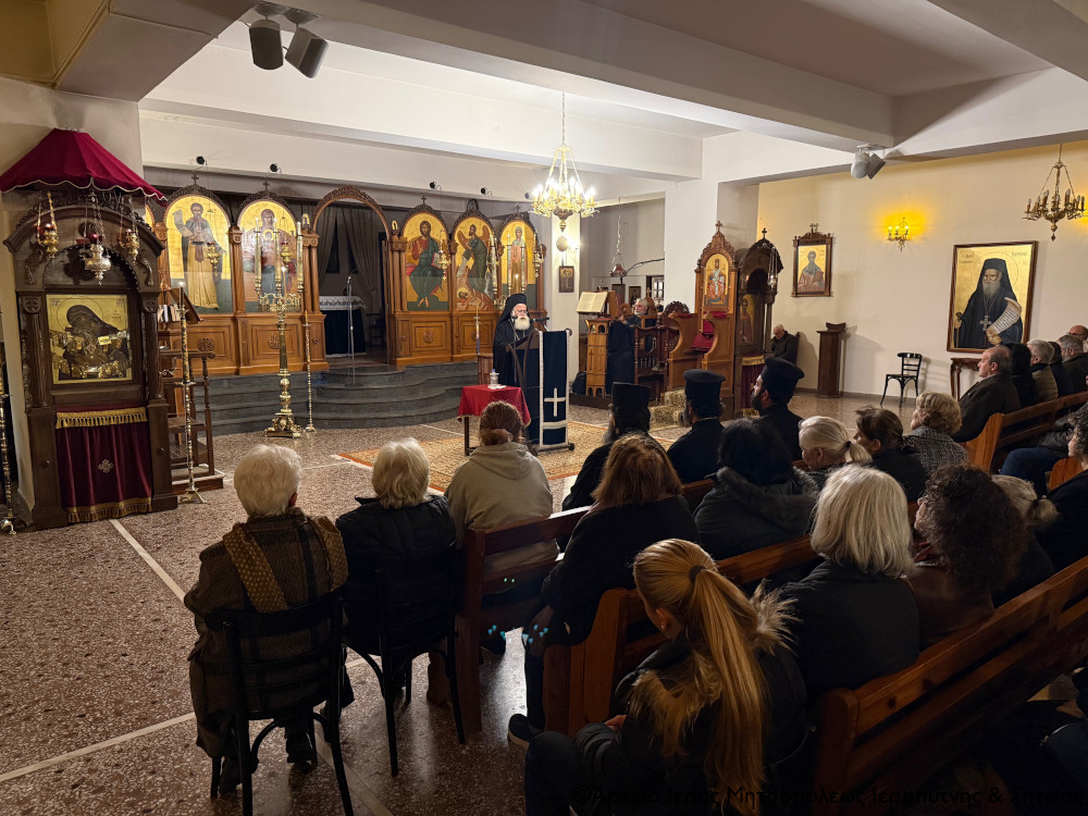 Mε λόγο μεστό και περιεκτικό ο Σεβασμιώτατος μίλησε για την κατ εξοχήν περίοδο νηστείας, εγκρατείας μετανοίας, κατανύξεως, εντατικής προσευχής και πνευματικού αγώνα, υπογραμμιζοντας ότι η Μεγάλη Τεσσαρακοστή είναι μια πρόσκληση από τον Θεό να βαδίσουμε ένα δρόμο που σιγά-σιγά, αφού πρώτα περάσουμε από τον Γολγοθά, οδηγεί σε έναν τόπο φωτός, στην εμπειρία της Αναστάσεως.
